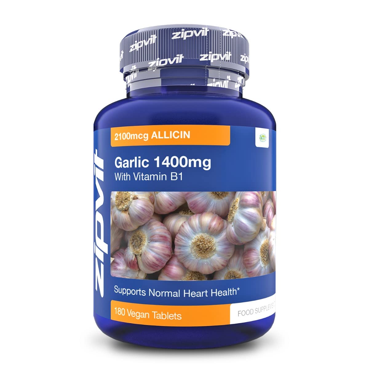 Garlic Tablets 1400mg, 2100mcg Allicin per Tablet with Added Vitamin B1. Supports Heart Health. 180 Vegan Tablets. 6 Months Supply.