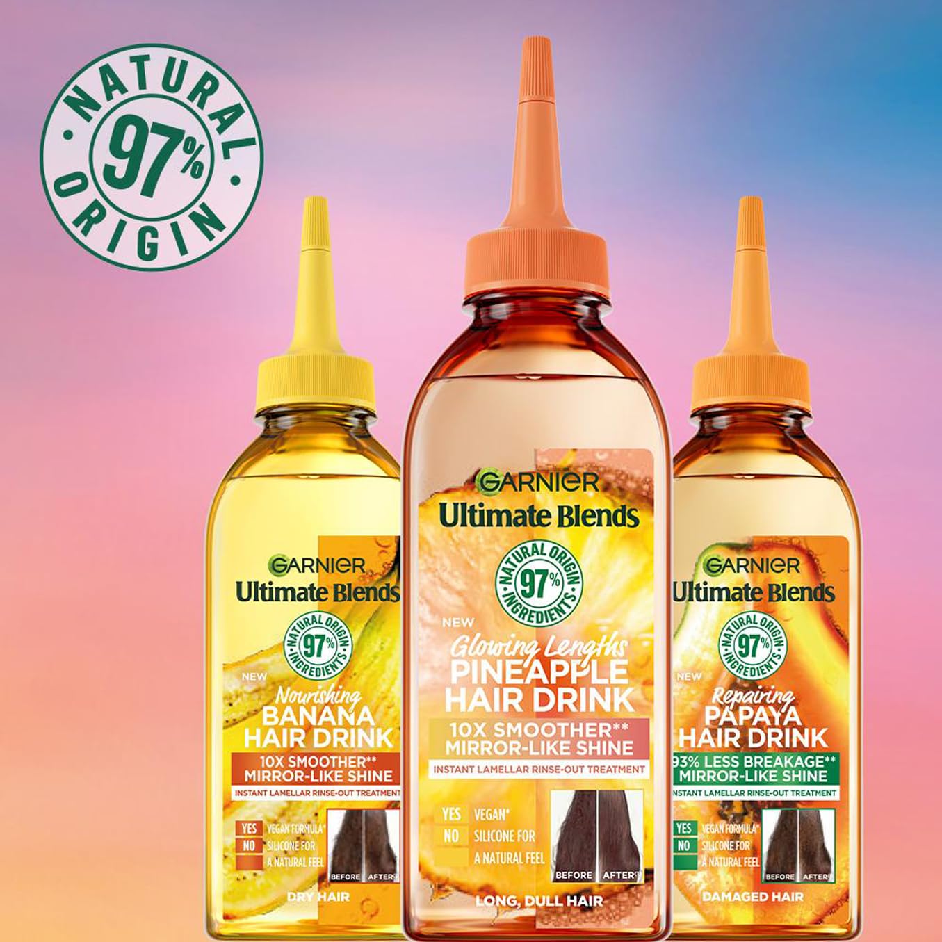 - Contents: 1x Garnier Ultimate Blends Repairing Papaya Hair Drink, Instant lamellar water, Rinse out, Liquid conditioner, For damaged hair, Volume: 200ml