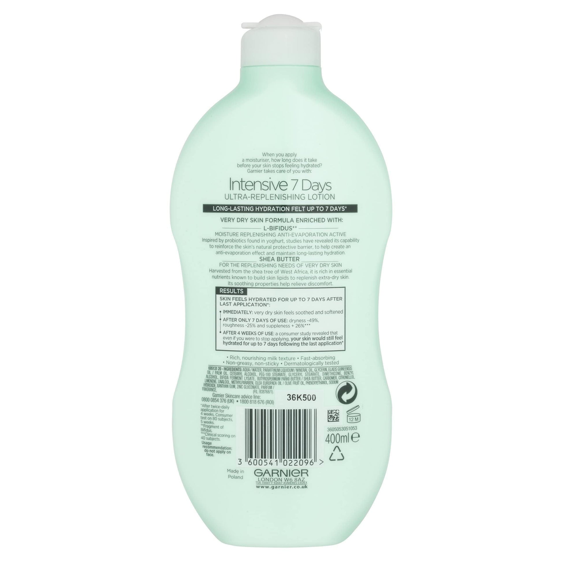 - LONG LASTING HYDRATION: Developed by Garnier for very dry skin, this ultra-replenishing lotion offers long-lasting hydration that is felt for up to 7 days after last application