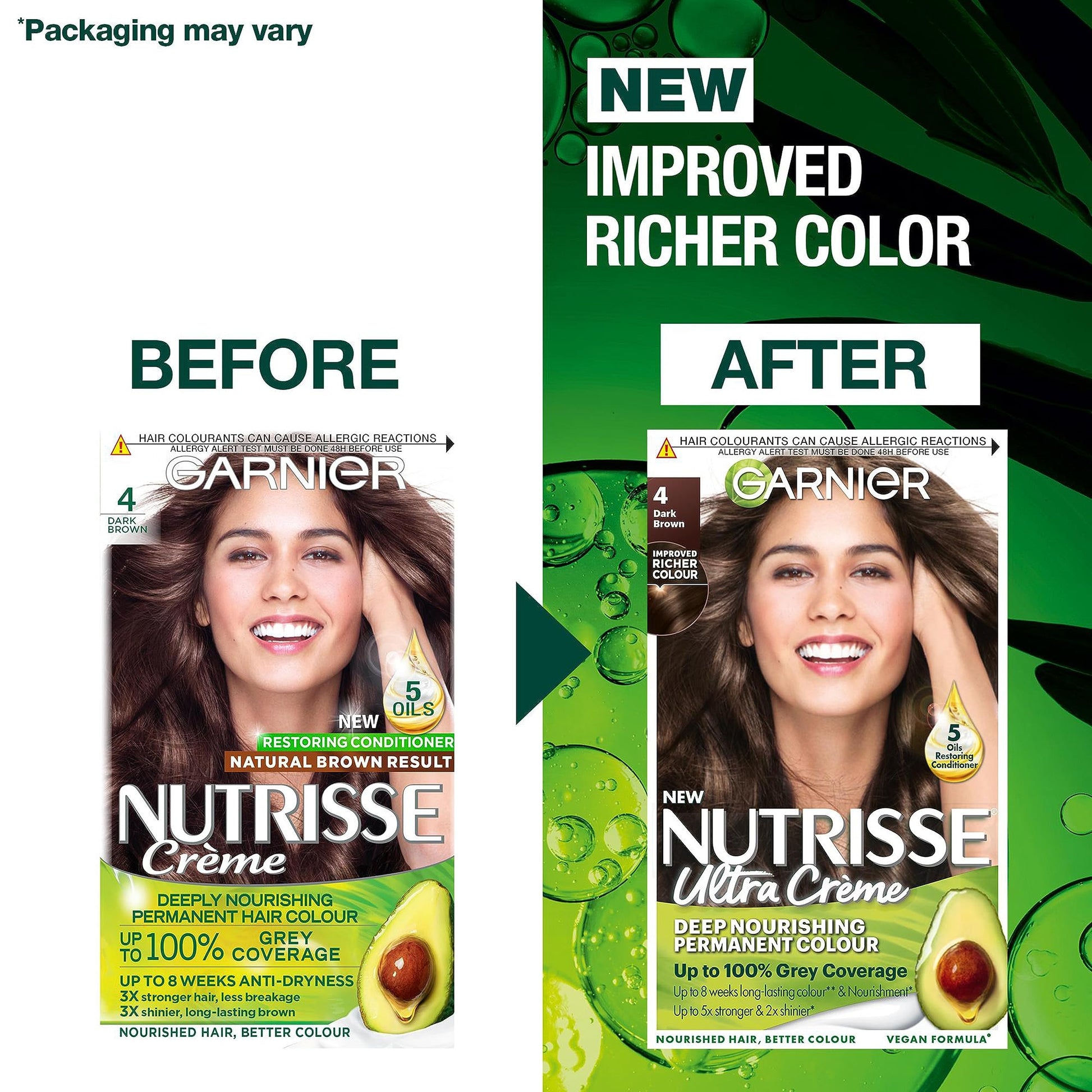 Garnier Nutrisse Permanent Hair Dye, Natural-looking, hair colour result, For All Hair Types, 4 Dark Brown