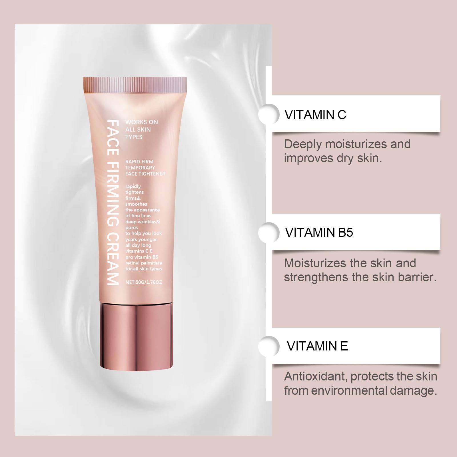 This firming cream is light and gentle, easily absorbed to keep your skin comfortable.
