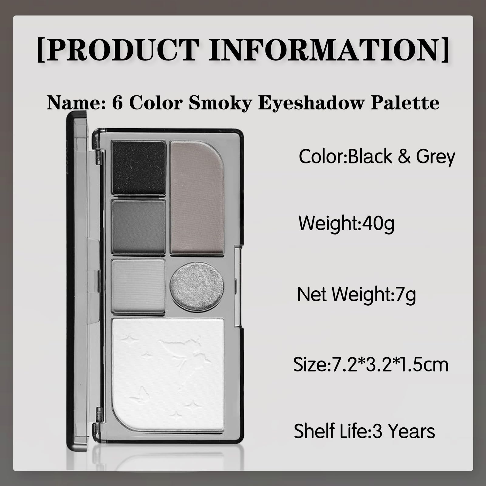 - Available in grey, black and silver, matte and shimmer, our stylish 6 colour smokey eyeshadow palette is suitable for all skin tones, creating a variety of imaginative looks that accentuate your personality.