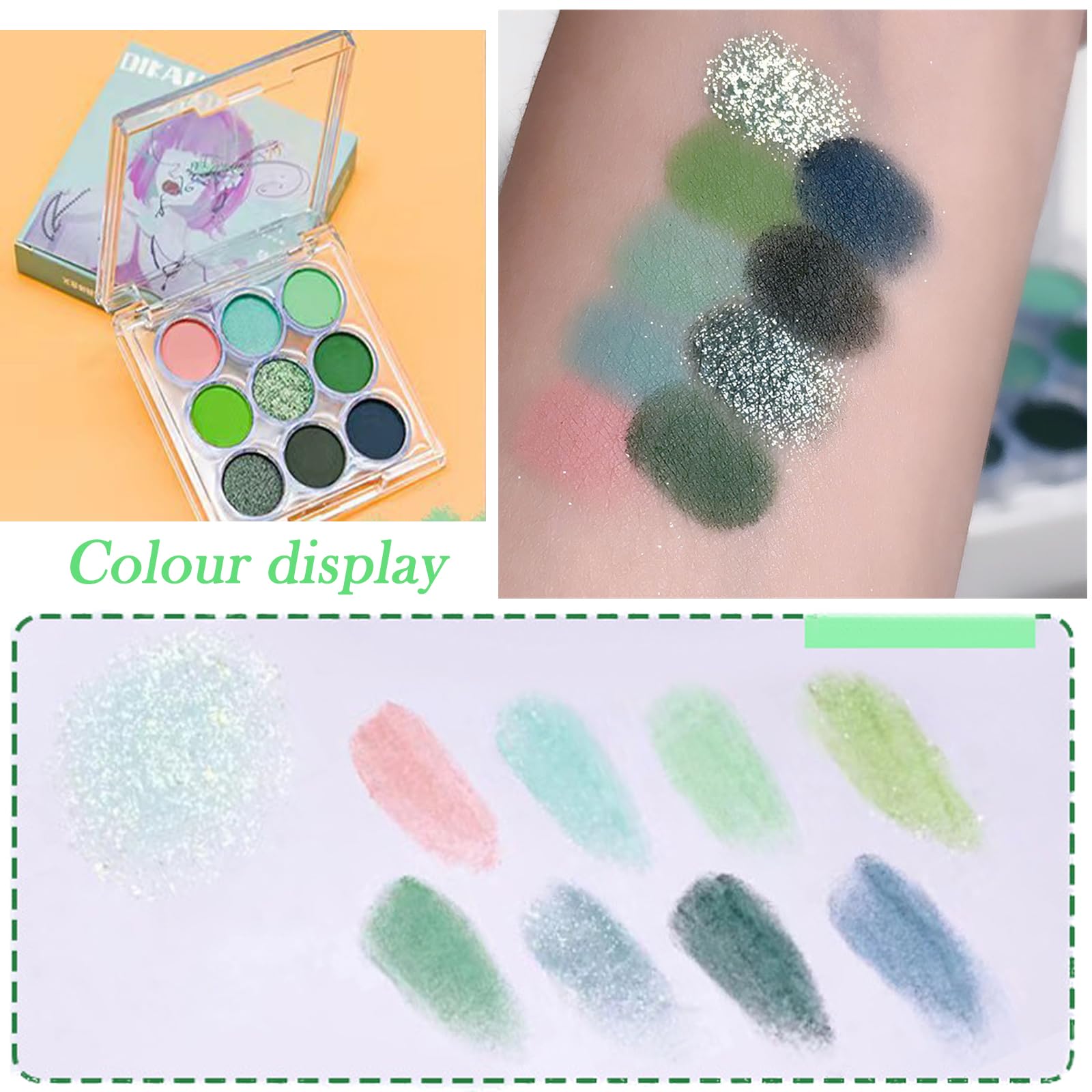 The green Eye Shadows Palette For Women powders are creamy and smooth, easy to glide on and apply,