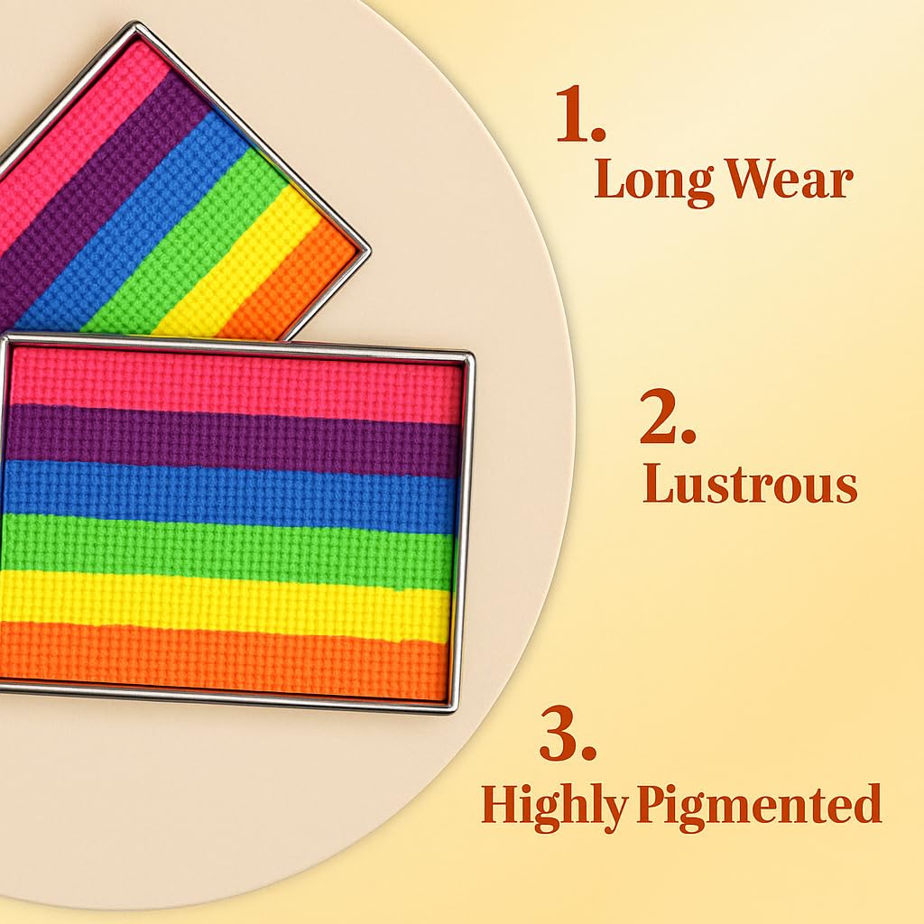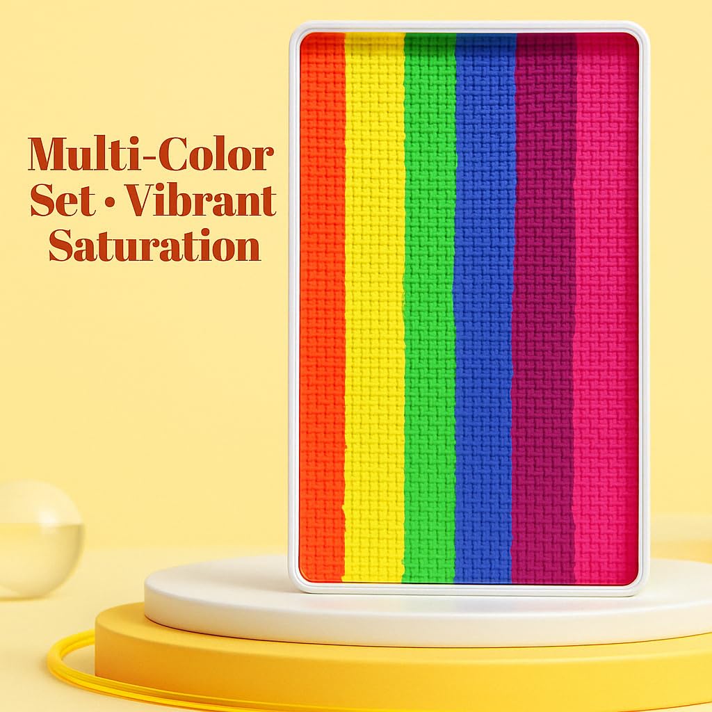 Bring your imagination to life with this vibrant 6-color rainbow face painting kit—perfect for creative makeup, festive occasions, and costume events.This face paint kit includes a water-activated palette featuring six vivid colors: red, yellow, blue, green, orange, and purple. Whether you’re preparing for Halloween, a birthday party, or a carnival, this rainbow face paint delivers bold pigmentation and smooth application on face and body.