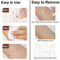 - Easy-to-Use Temporary Solution: Gold freckles temporary face tattoos are simple to apply and remove, offering a hassle-free way to experiment with freckle makeup, making them a convenient addition to your beauty routine.
