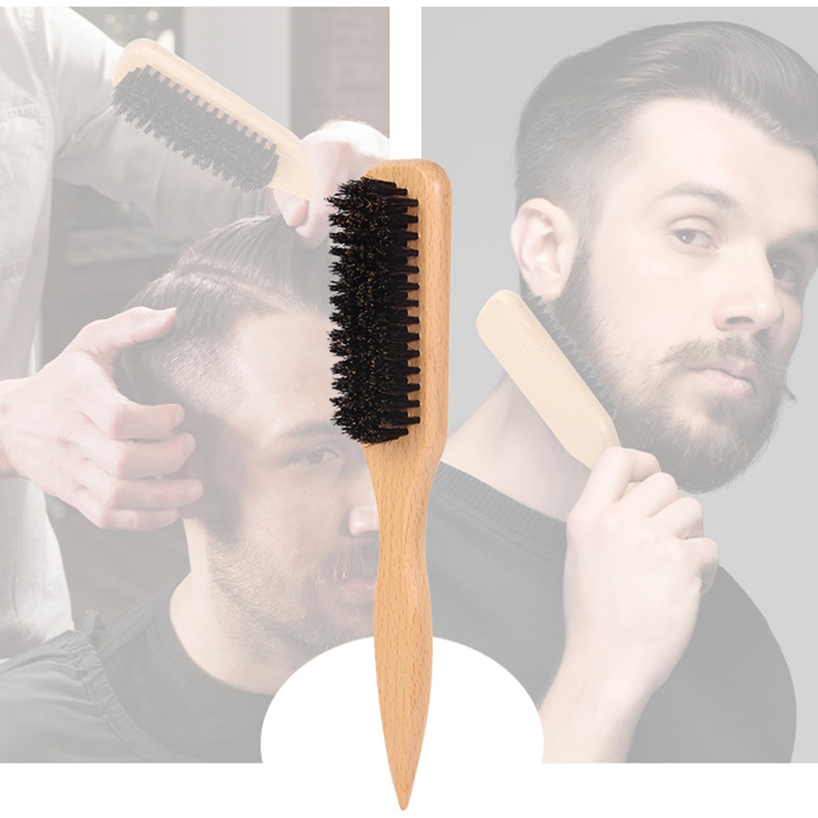 Generic Boar Bristle Slick Back Hair Brush for Sleek Ponytail Bun & Smoothing Baby Hairs, Flyaways, Edge Control - Backcombing & Teasing Hairbrush with Wide Rat Tail for Sectioning & Parting