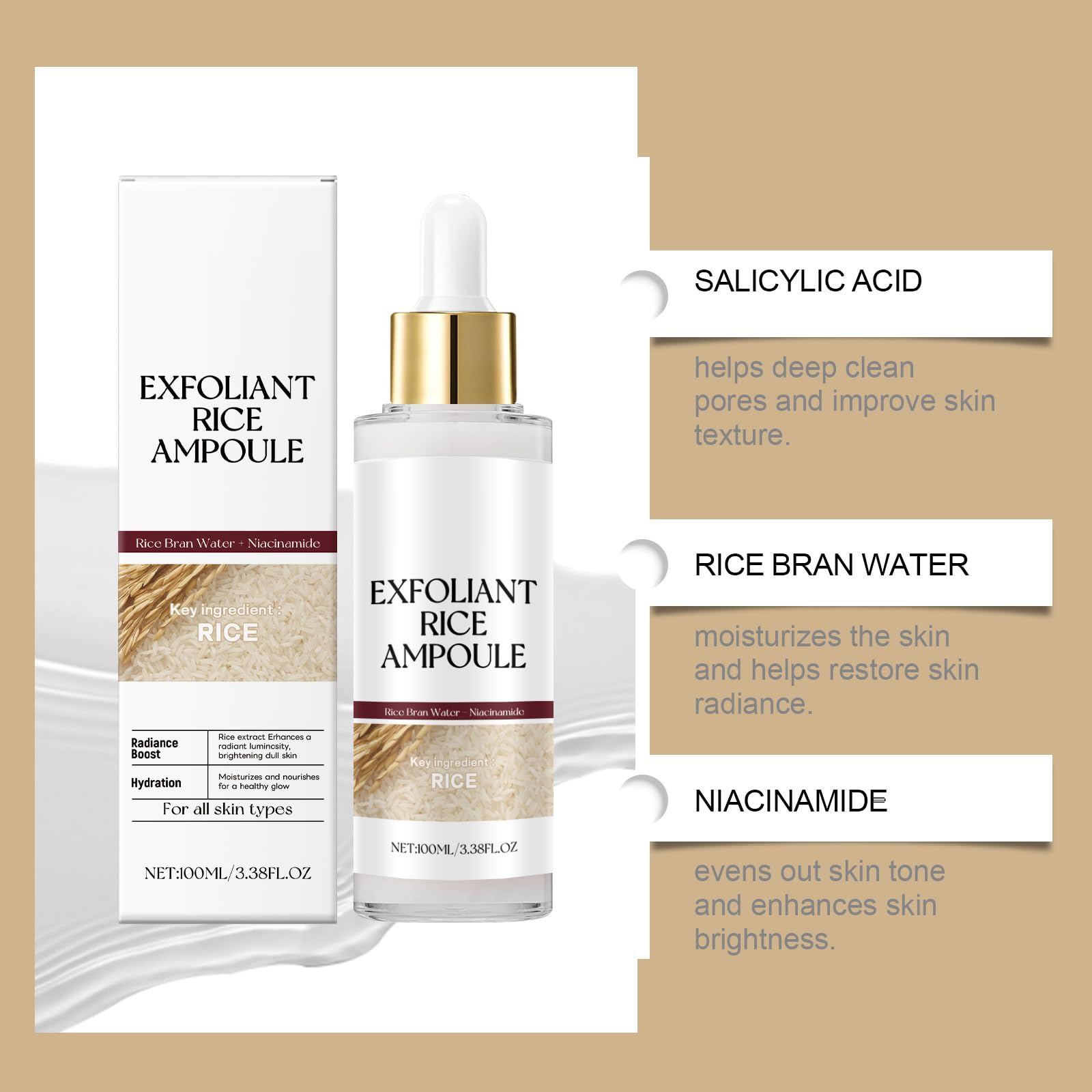 Generic Exfoliant Rice Ampoule,remove dead skin,blackheads and impurities,activate and moisturize the skin,shrink pores (White rice)