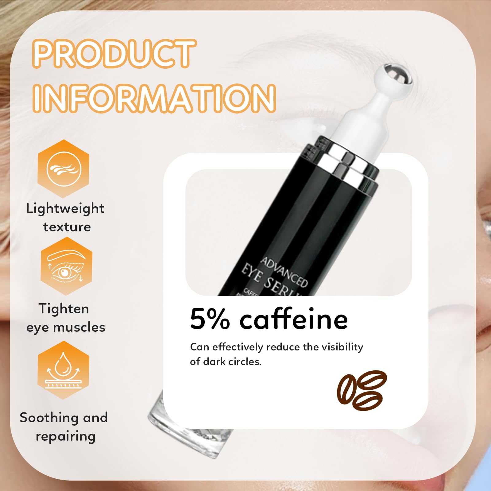 Generic Eye Cream with 5% Caffeine, Reduces Dark Circles, Anti-Wrinkle & Firming, Depuffing Eye Serum, Unisex Eye Care, 15ml