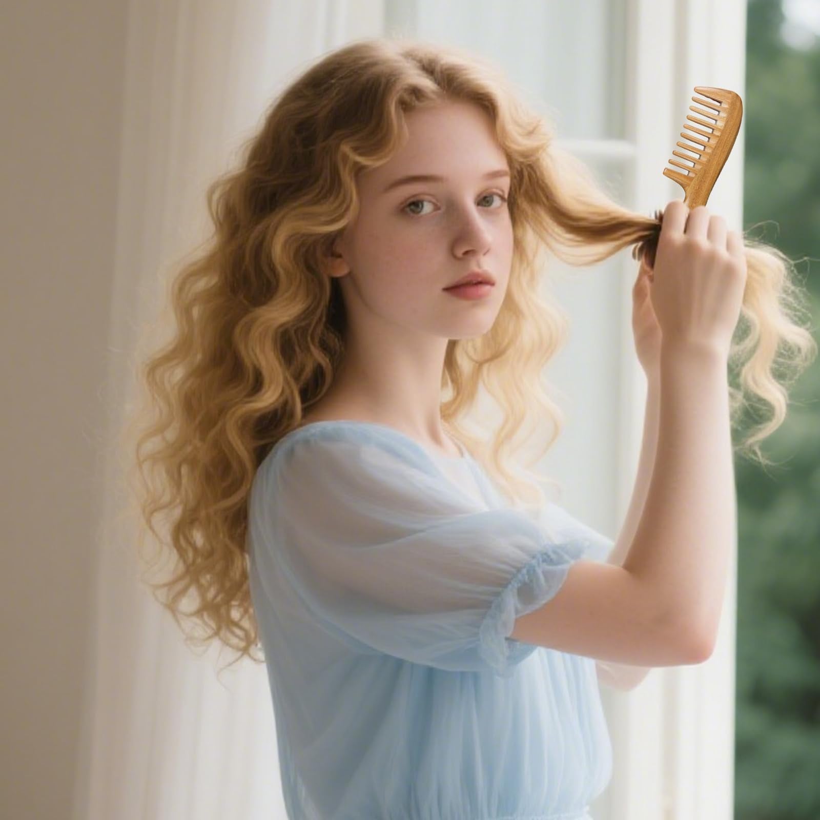 Generic Green Sandalwood Wide-Tooth No Static Handmade Comb, Quality Wooden Curls Comb (Wide-Tooth)