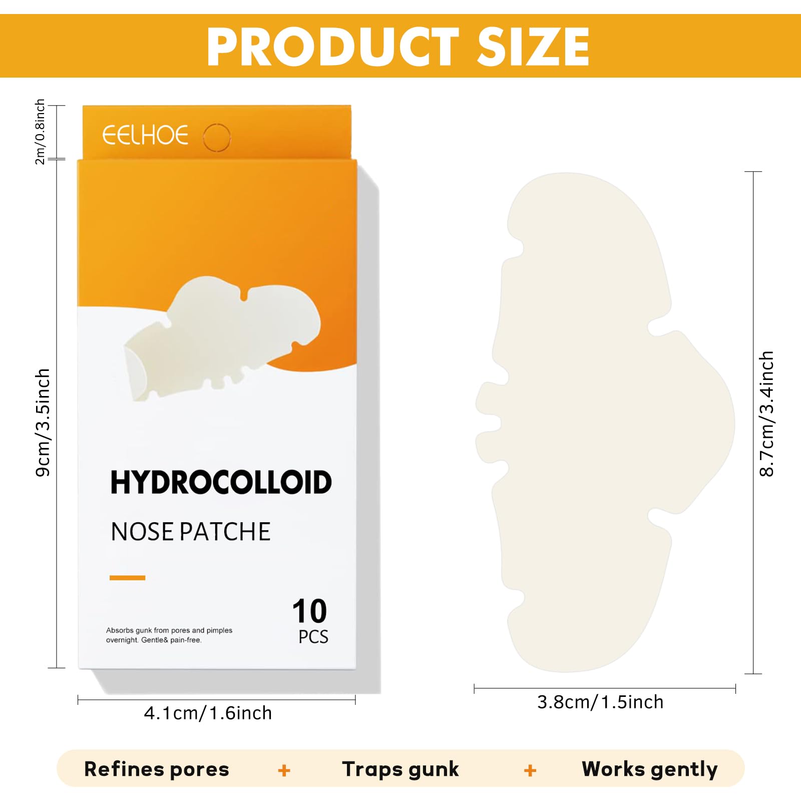 Generic Hydrocolloid Nose Strips for Blackhead Removal, Deep Cleansing Pore Strips to Absorb Oil and Dirt, Acne Treatment Patches for Nose, Invisible Spot Stickers for Men and Women (10 Count)