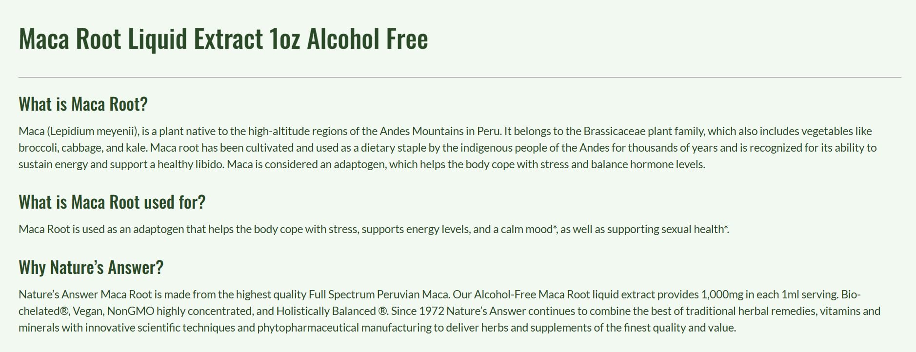Generic Natural's Answer MacaRoot 1000mg, Gluten-Free, Alcohol-Free, 30 ml