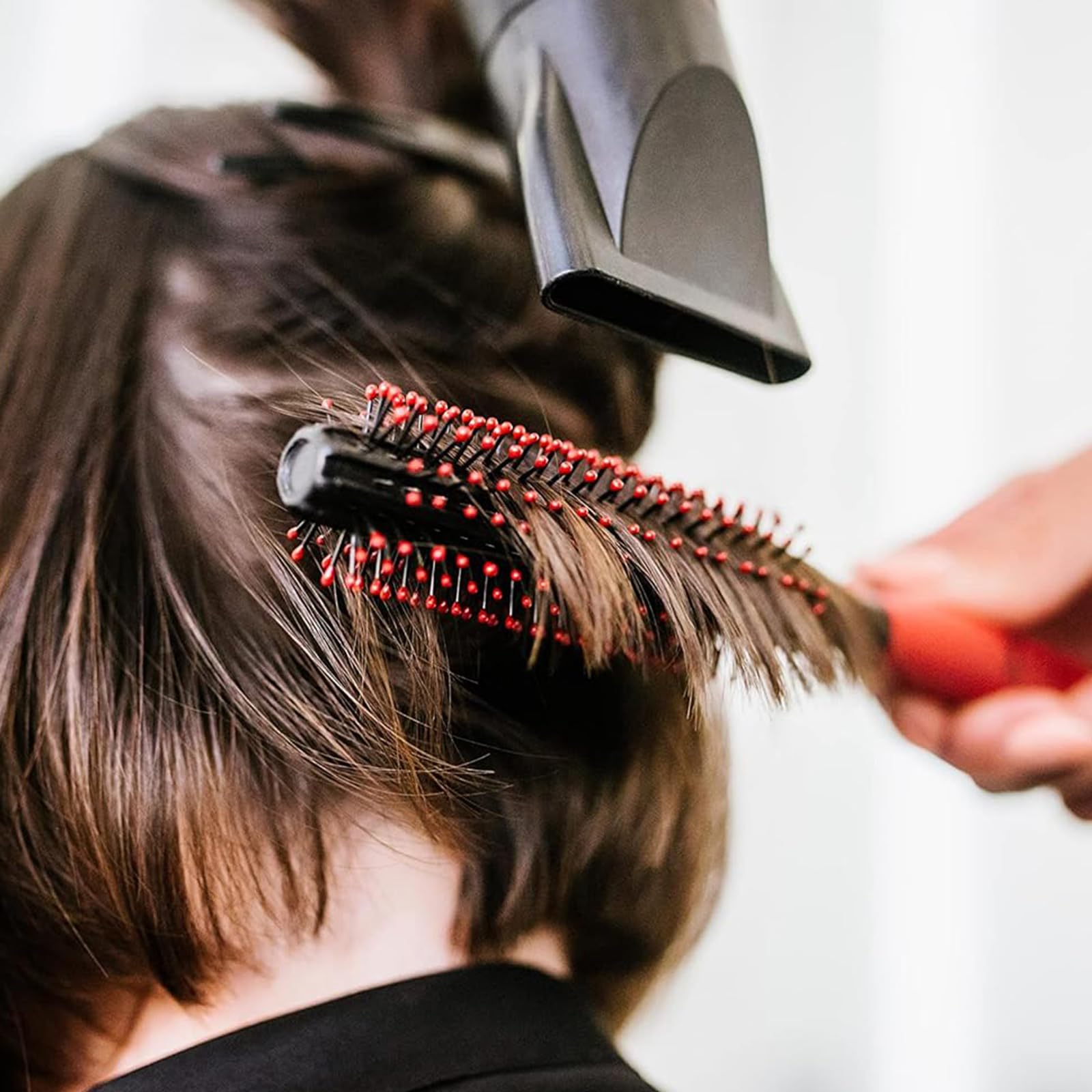 Generic Professional Quiff Roller Round Hair Brush with Red Rubber Grip Handle Slick Back Hair Brush, Curly Hair Brush Ideal round hair brush for men and Barbers