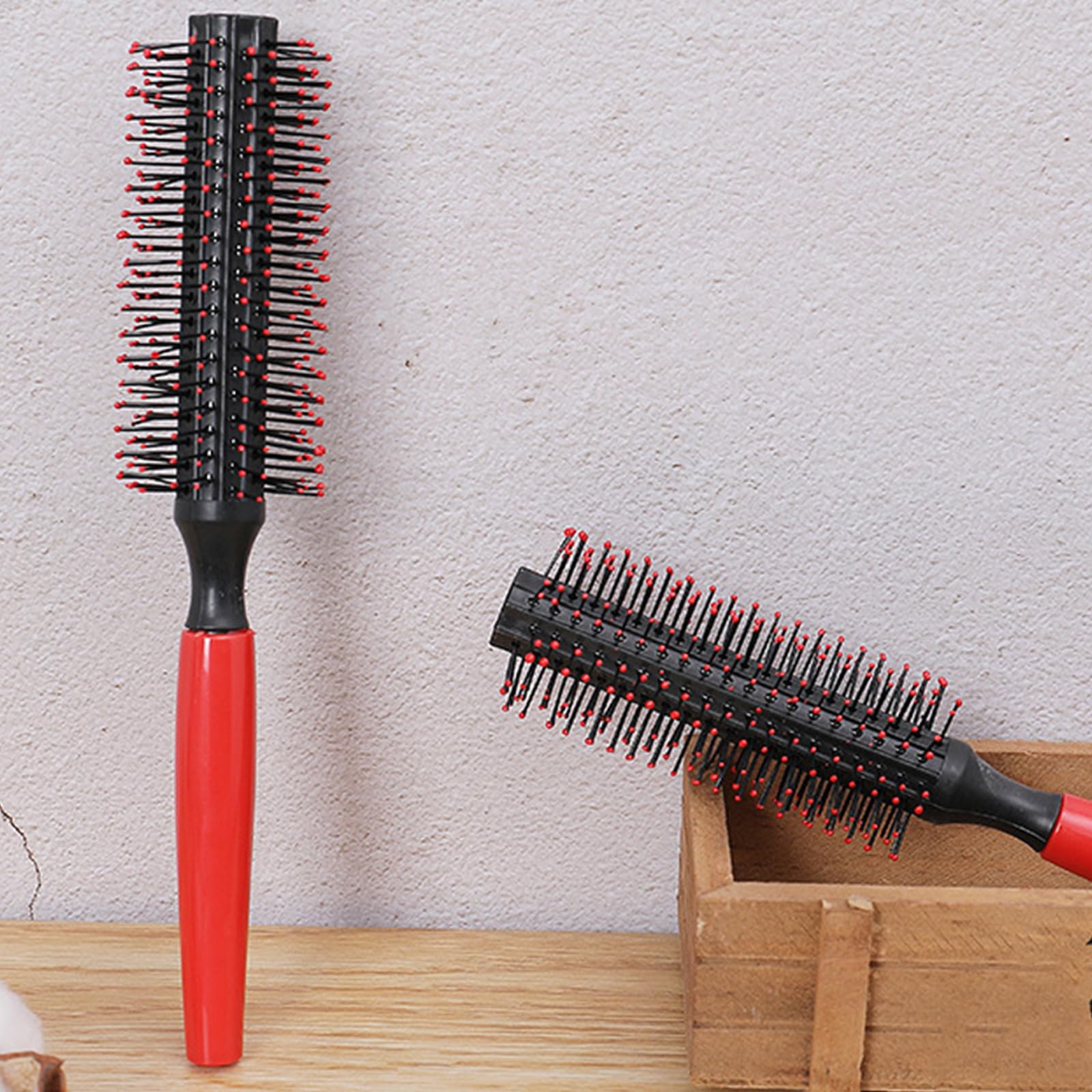 GENERIC Professional Quiff Roller Round Hair Brush with Red Rubber Grip Handle - Slick Back Hair Brush, Curly Hair Brush Ideal round hair brush for men and Barbers