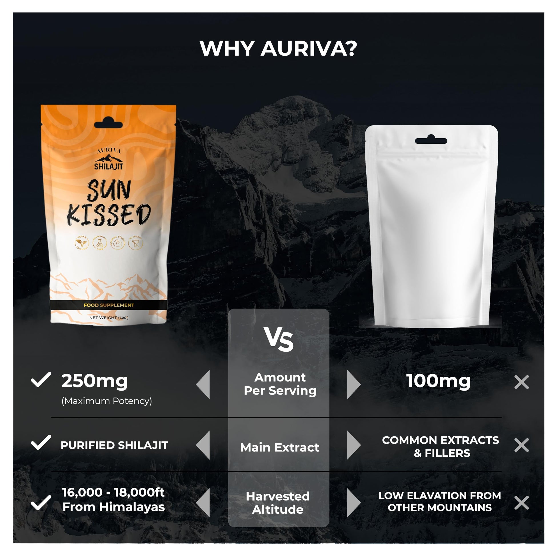 Shilajit is an incredibly rare and ancient substance formed from rocks found deep in the Himalayan Mountains which contains an impressive 85 minerals in ionic form. Our bodies need minerals as essential building blocks for our cells to function properly. Deficiencies in these elements may lead to many chronic diseases and weaken our cells and body functions. An active ingredient in Shilajit, Fulvic Acid, is used by our bodies to break these essential minerals down and reap their benefits in full. Unlike many other mineral supplements, Shilajit is 100% naturally harvested and preserves it's molecular structure even after it is extracted. During many million years of Shilajit formation deep in Himalayan rocks, the Fulvic Acid evolved complex molecular bonds with minerals and metals that cannot be replicated in a lab. The organic matter transforms into a mineral-rich resin which is buried deep in the mountains and drips very slowly, before turning into a black tar looking rock. This rock hardens and preserves its pure vitamin, mineral and enzyme content. In our efforts to source this life-changing supplement, we remove any the middle-men along the way. This means we work directly with Shilajit harvesters and use their expertise in acquiring and harvesting the best quality Silajeet resin to bring the purest product to market.More Info