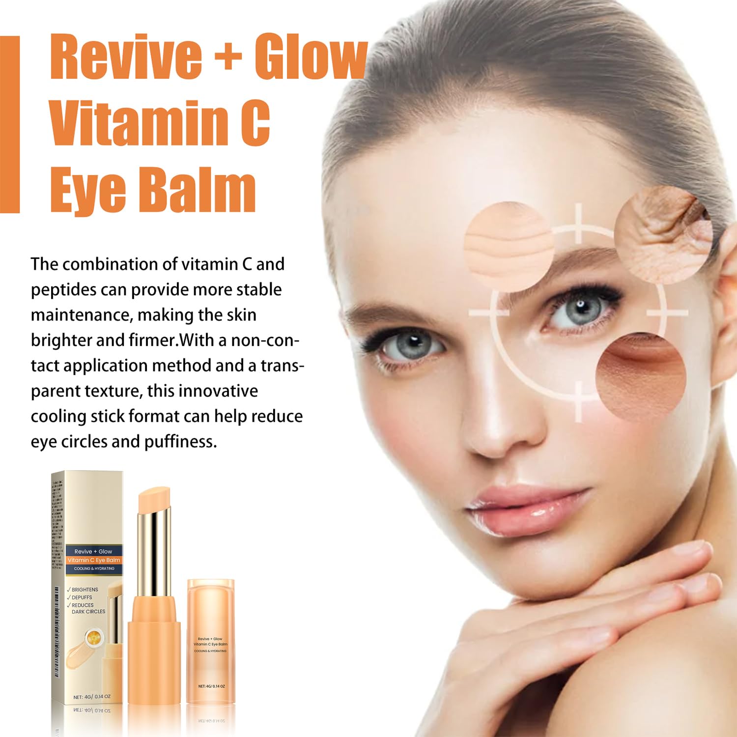 Brighten and Refresh Tired EyesThis dark circle eye cream is designed to help your under-eye area look more vibrant and feel more hydrated. Whether you're starting the day or winding down at night, this eye cream stick glides on smoothly to support a refreshed and energized look. It’s perfect for reducing the look of dullness and enhancing the natural radiance of your skin.
