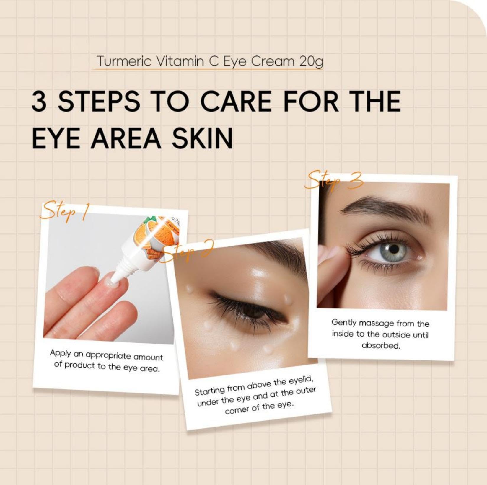 1️⃣ Gently dab small amount around eye contour