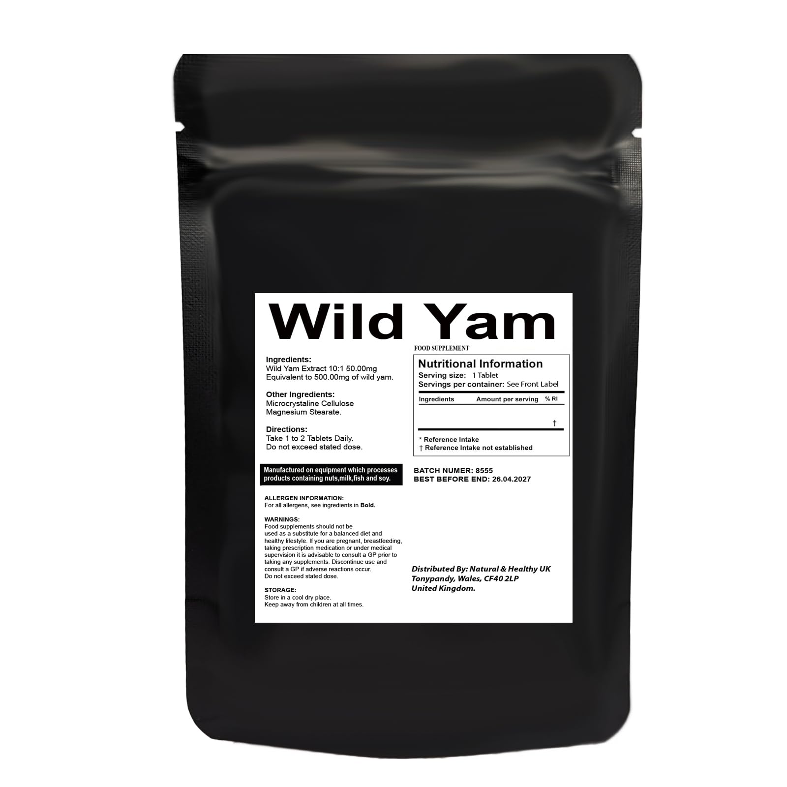 Experience the benefits of Wild Yam Root with our high-potency extract tablets. Each pack contains 120 tablets, providing a 2-4 month supply when taking 1-2 tablets daily. Our easy-to-swallow tablets are conveniently packaged in a letterbox-friendly size, making it easy to receive your order without needing to be home. Each serving provides 50mg of concentrated extract, equivalent to 500mg of whole root. Wild Yam Root has traditionally been used for centuries for its potential support of women's health. Ingredients: Wild Yam 10:1 (50mg concentrated extract providing 500mg wild yam) Other Ingredients: Microcrystalline Cellulose, Magnesium Stearate Intake Instructions: Take 1 to 2 tablets daily with water. Do not exceed recommended dosage.More Info