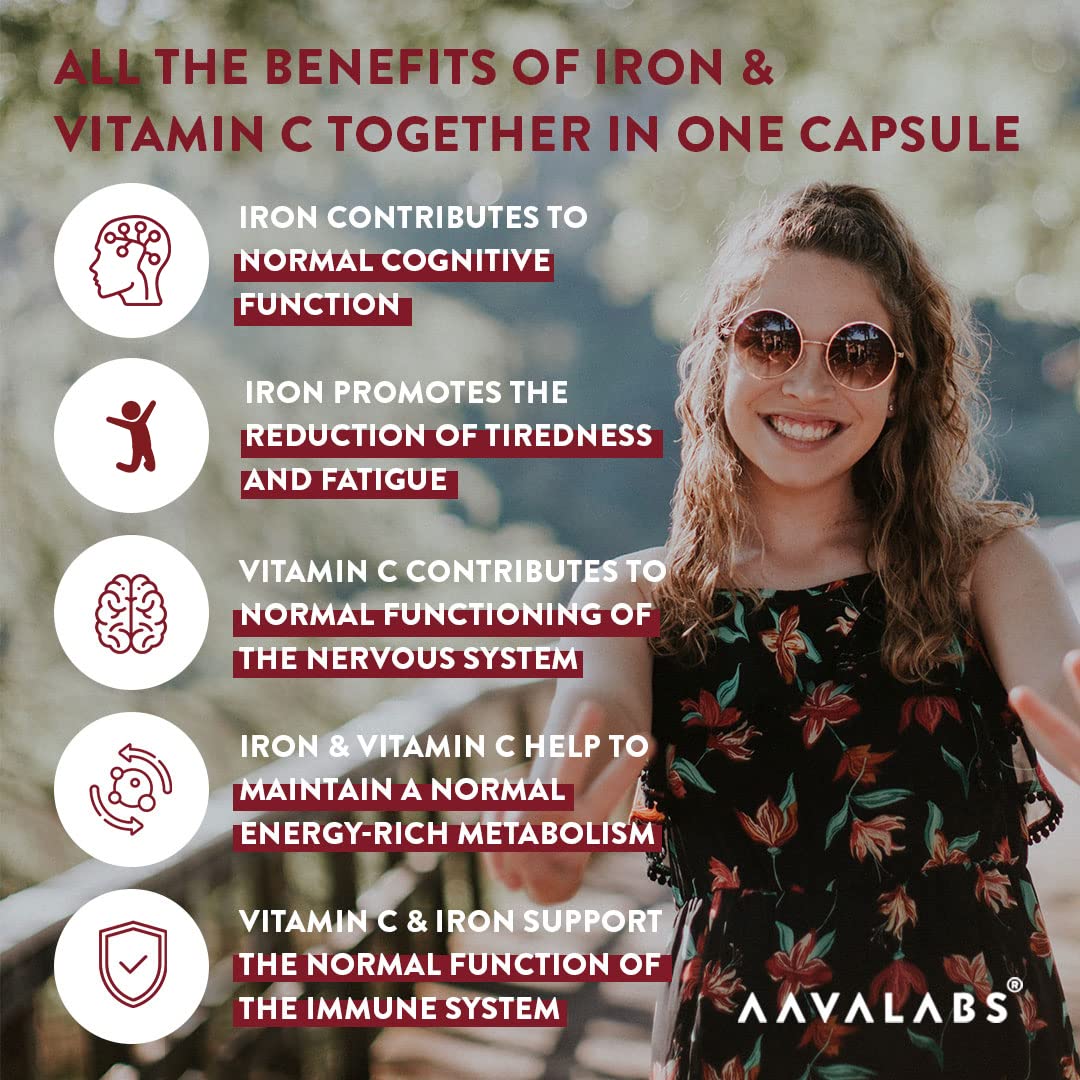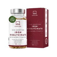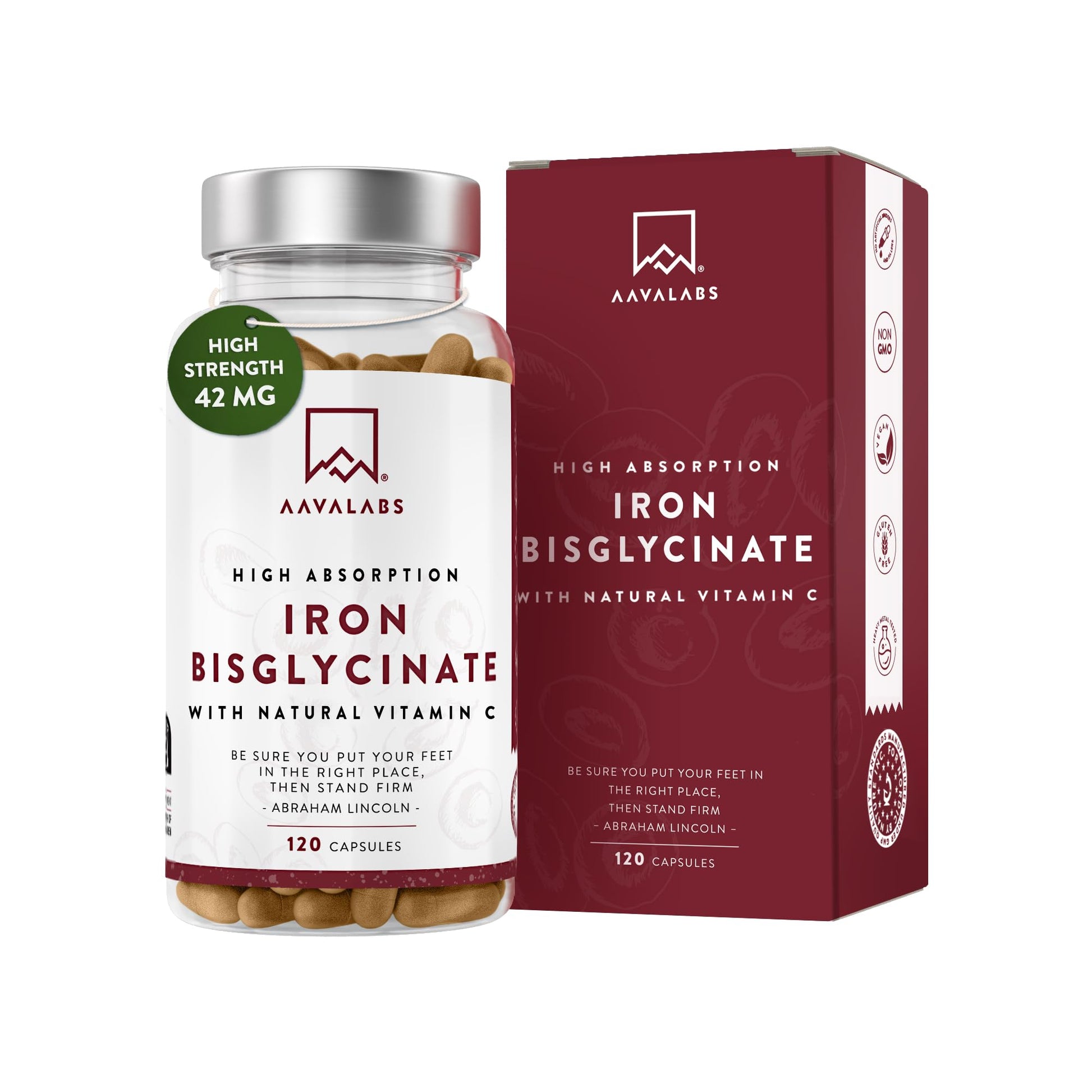 Gentle Iron Supplements for Women and Men - 42 mg Iron Tablets high Strength with Natural Vitamin C - Active Iron bisglycinate - Fatigue Supplements with high bioavailability - 120 Capsules