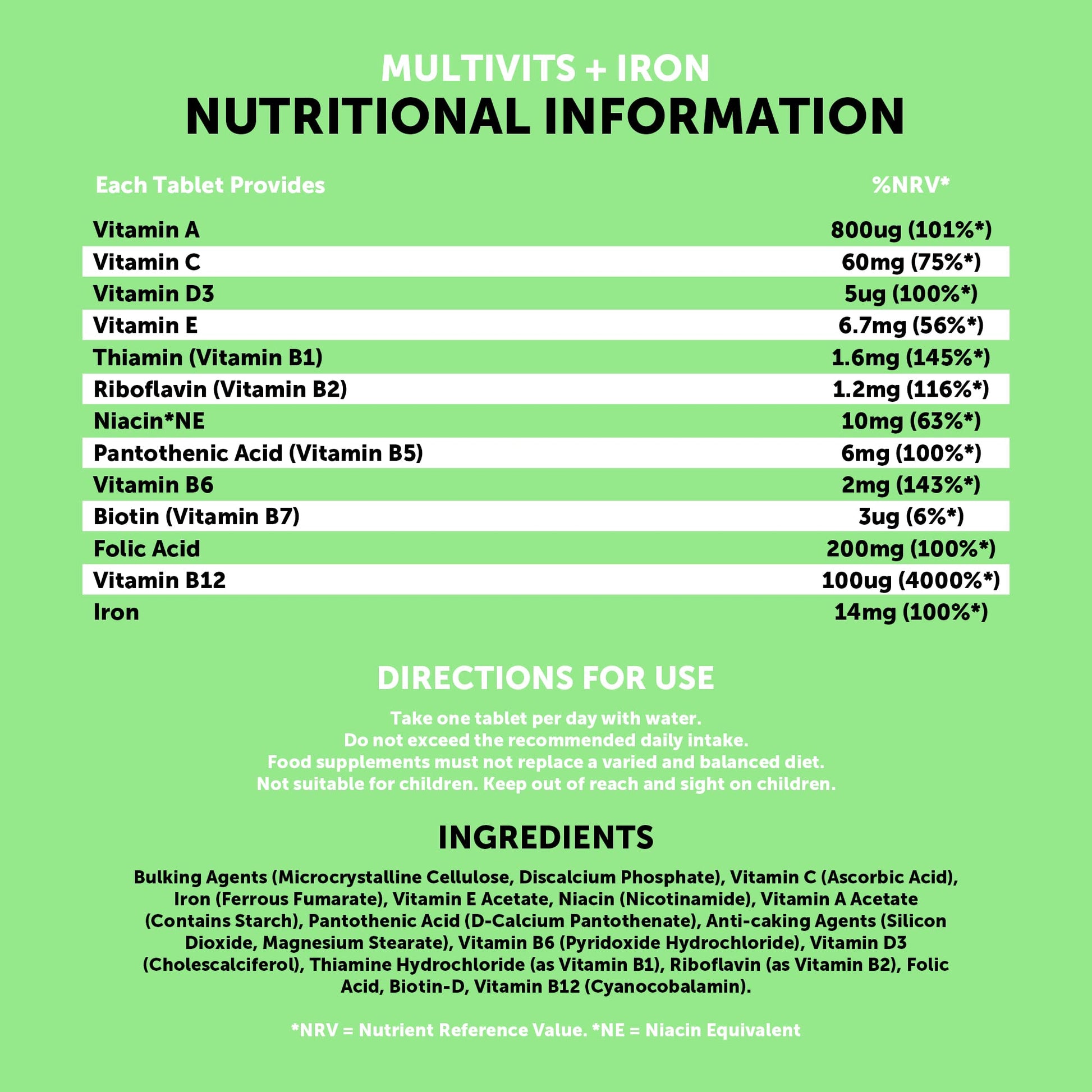 Get More Vits - Multivitamin Tablets with Iron (90 Tablets), Promotes Stronger Immune System, Healthy Bones, Teeth & Muscles, Supports Faster Metabolism, Combats Tiredness & Fatigue, Vegetarian, Vegan