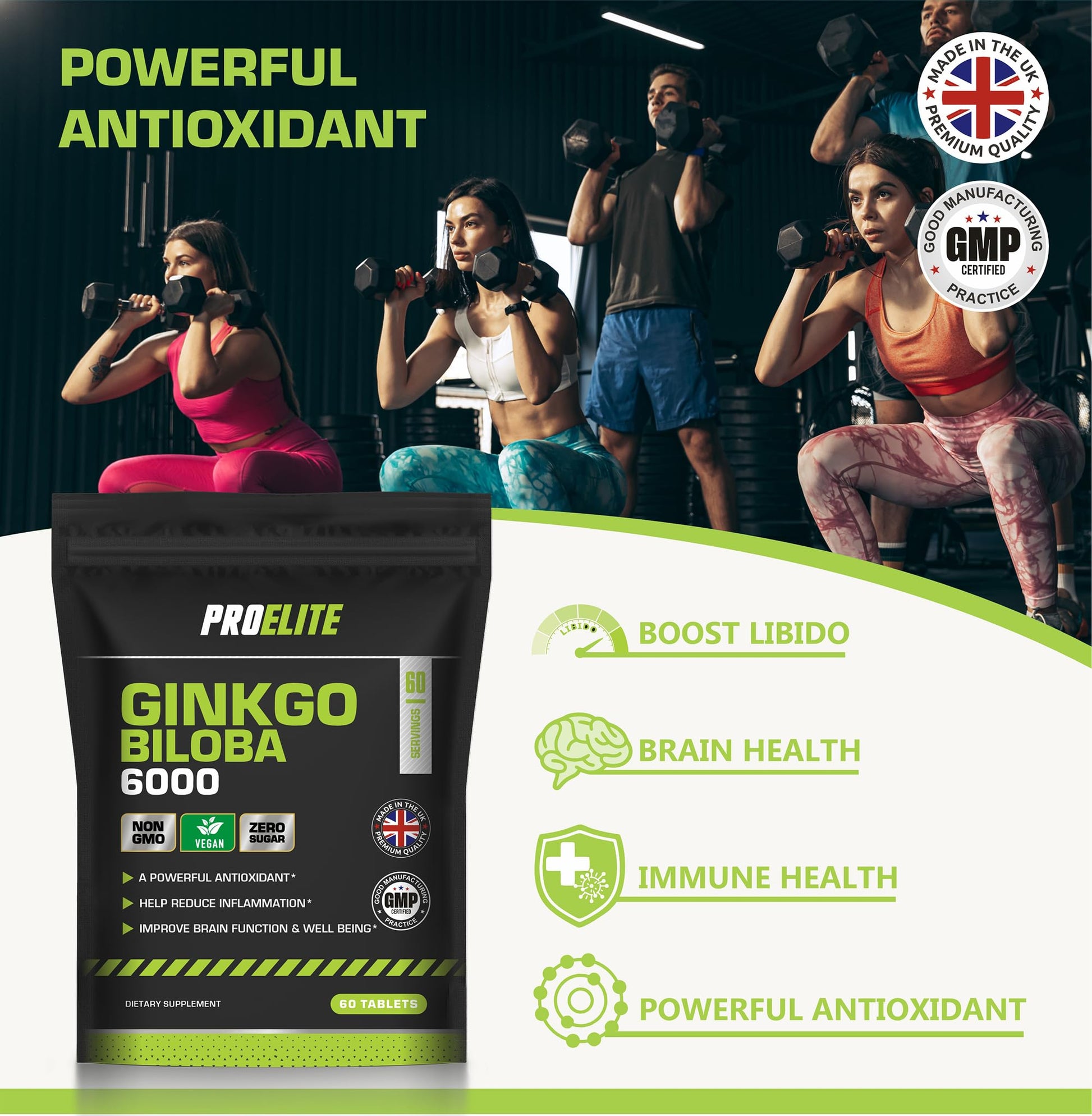 Ginkgo Biloba 6000mg - High Strength Vegan Ginkgo Biloba Leaf Extract 180 Tablets 50:1 Extract � Gluten Free, GMO Free - Made in UK by PROELITE