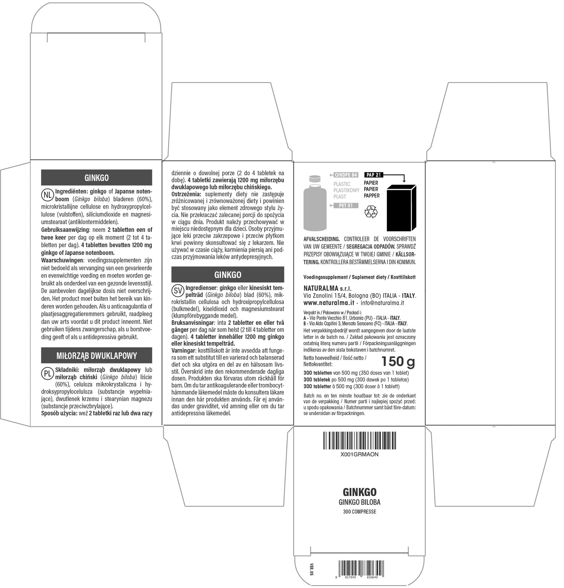 Ginkgo (Ginkgo biloba) leaves 300 TABLETS of 500 mg each (150 g format). All NATURALMA food supplements are produced using natural and top quality ingredients. Our company selects the best herbs to ensure a high concentration of functional and nutritional substances. Our products are suitable for vegans and do not contain preservatives, colourants, flavourings and synthetic sweeteners. NATURALMA food supplements are notified to the Italian Ministry of health and are produced and packaged in ITALY. Product in the form of pills and tablets (they are not opercula, capsules or softgels). 1 tablet contain 300 mg of Ginkgo.More Info