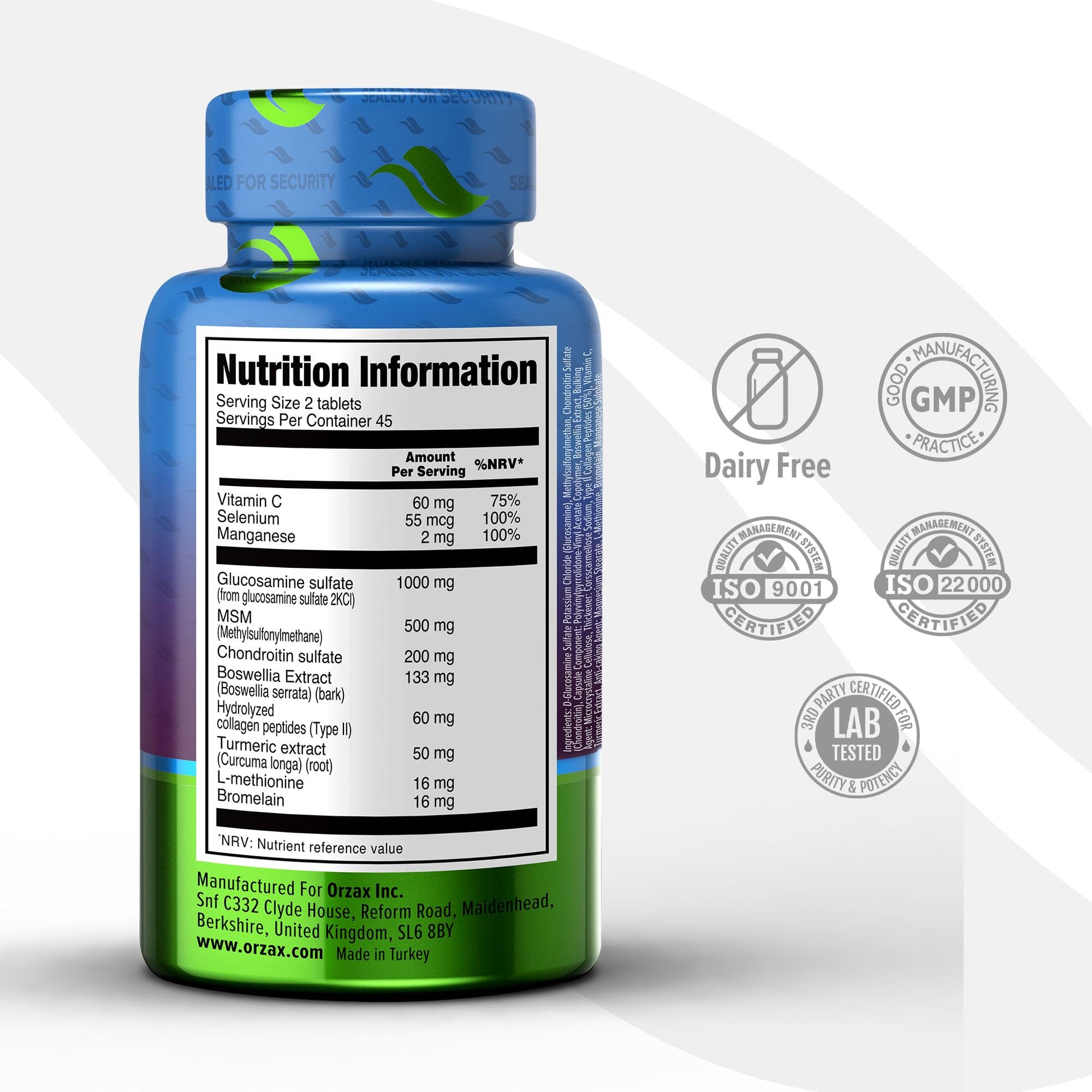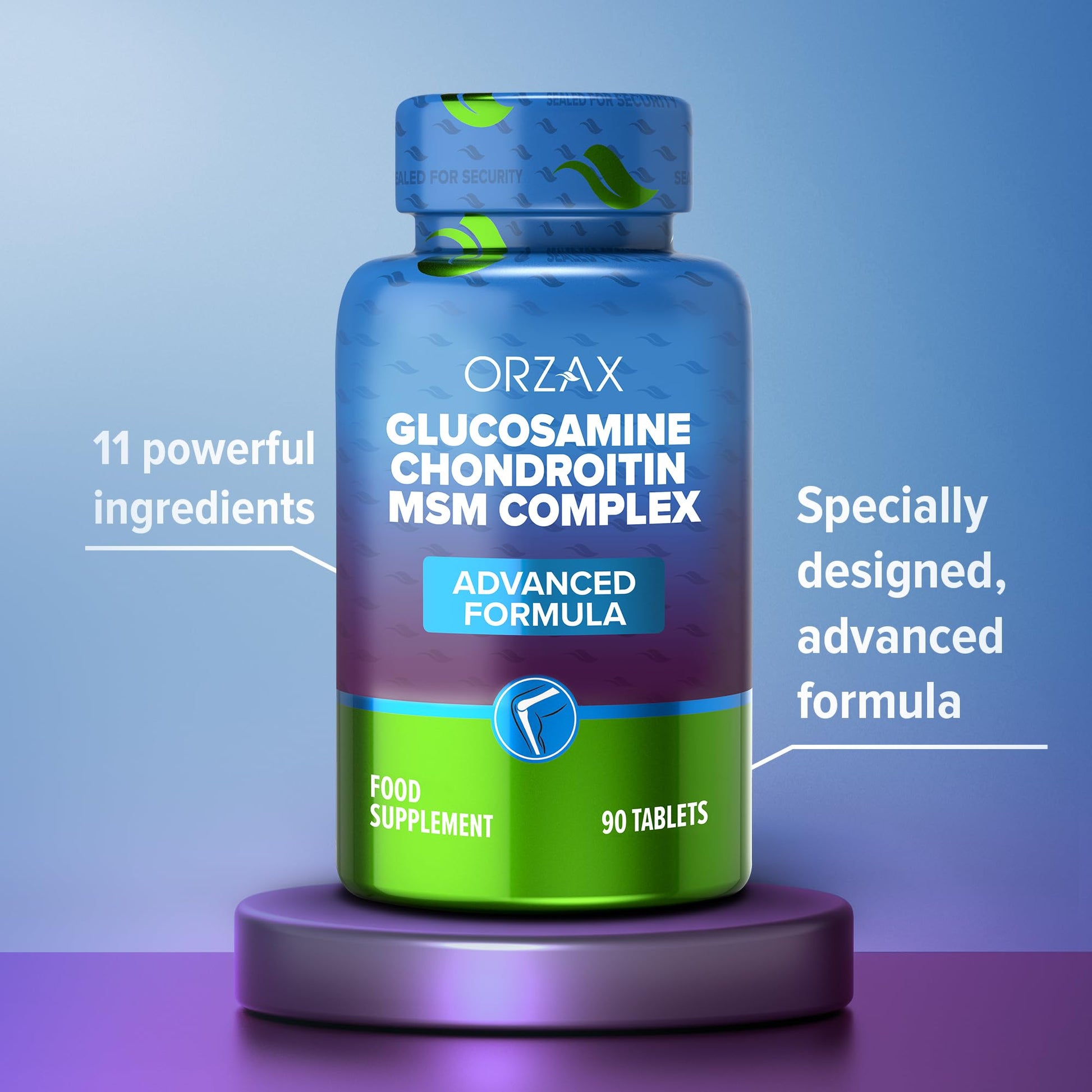 Glucosamine Chondroitin MSM Complex, 90 Tablets, High Strength, with Collagen, Boswellia & Bromelain,Turmeric,Joint Supports