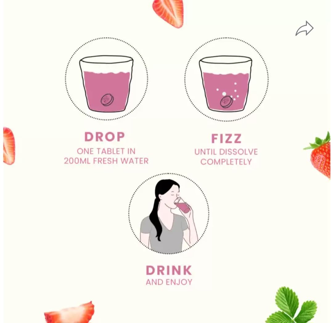 Glutathione 500mg & Vitamin C 500mg Strawberry Flavour Effervescent Tablets-Premium Skin Brightening, Antioxidant- 20 Tablets