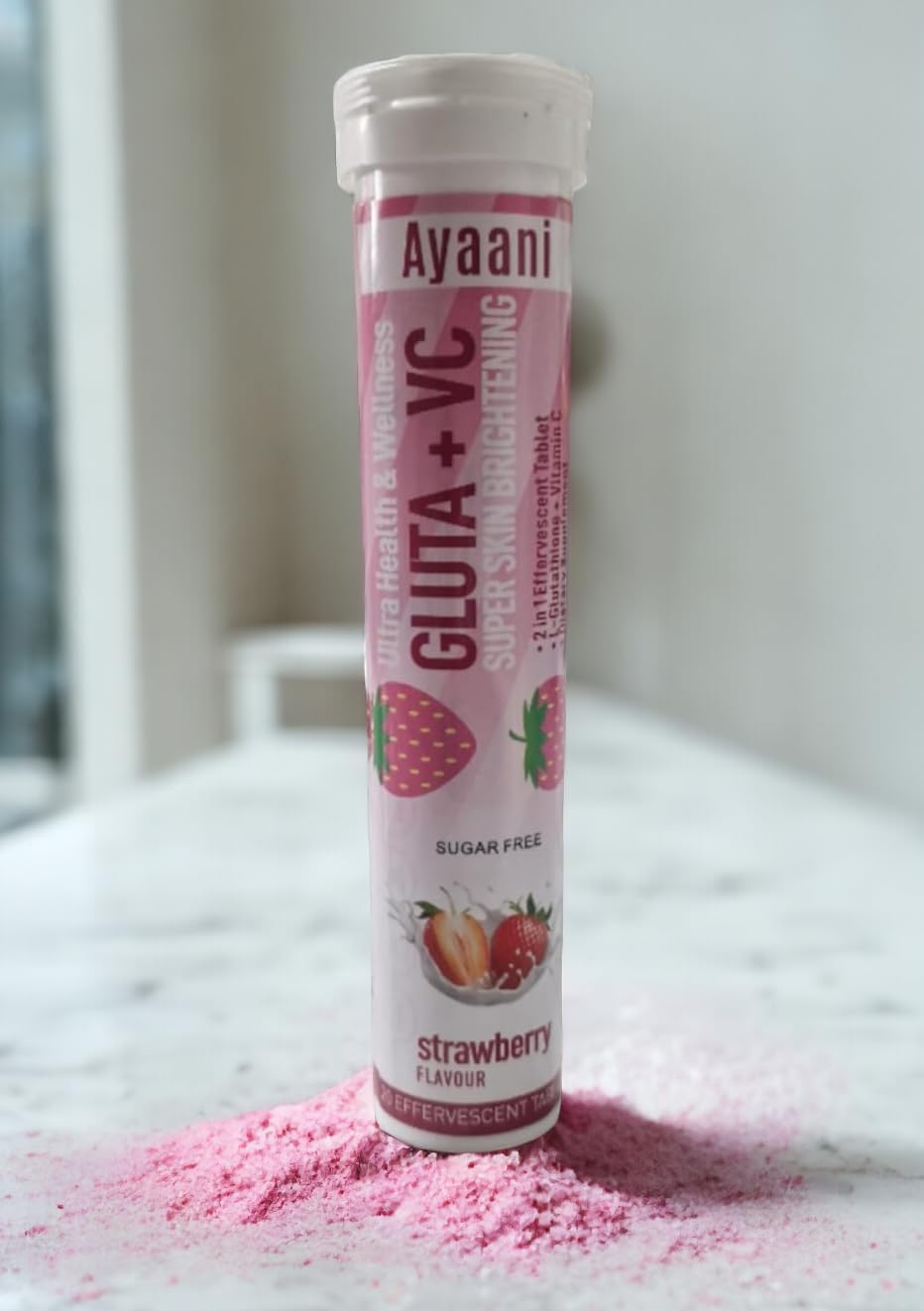 Product Description: Experience the power of Ayaani's Gluta + VC tablets, designed to elevate your skin's natural glow while bolstering your health. Each strawberry-flavored tablet is packed with antioxidants, ready to dissolve into a tasty beverage that supports your body's immune function and contributes to a luminous complexion. Our commitment to quality means you're choosing a vegan, non-GMO supplement you can trust. Safety Information: CAUTION: For adult use only. Not for pregnant or breastfeeding women. Consult a healthcare professional before use. Store in a cool, dry place. Keep out of reach of children. Directions: For adults, as a dietary supplement, dissolve one (1) tablet daily on an empty stomach or as advised by a healthcare professional.More Info