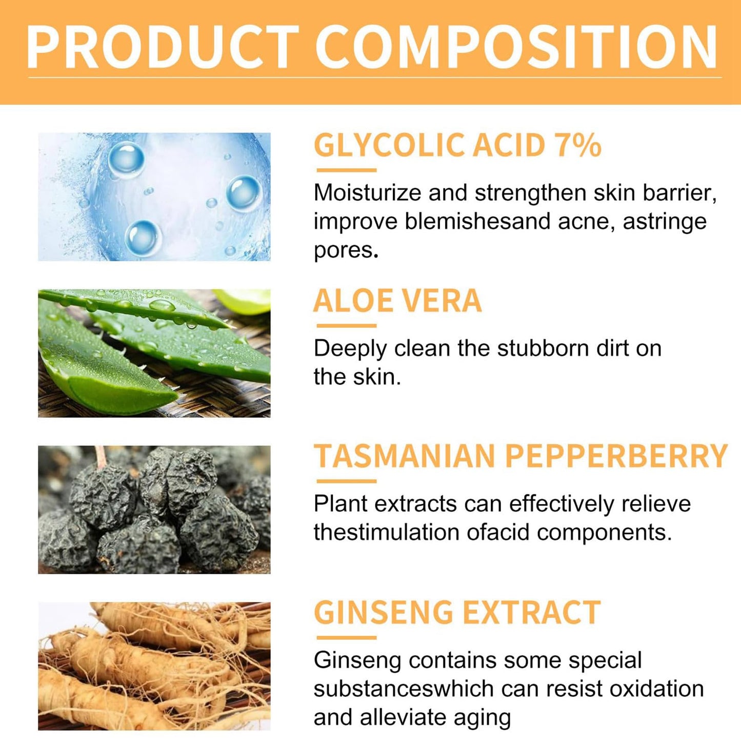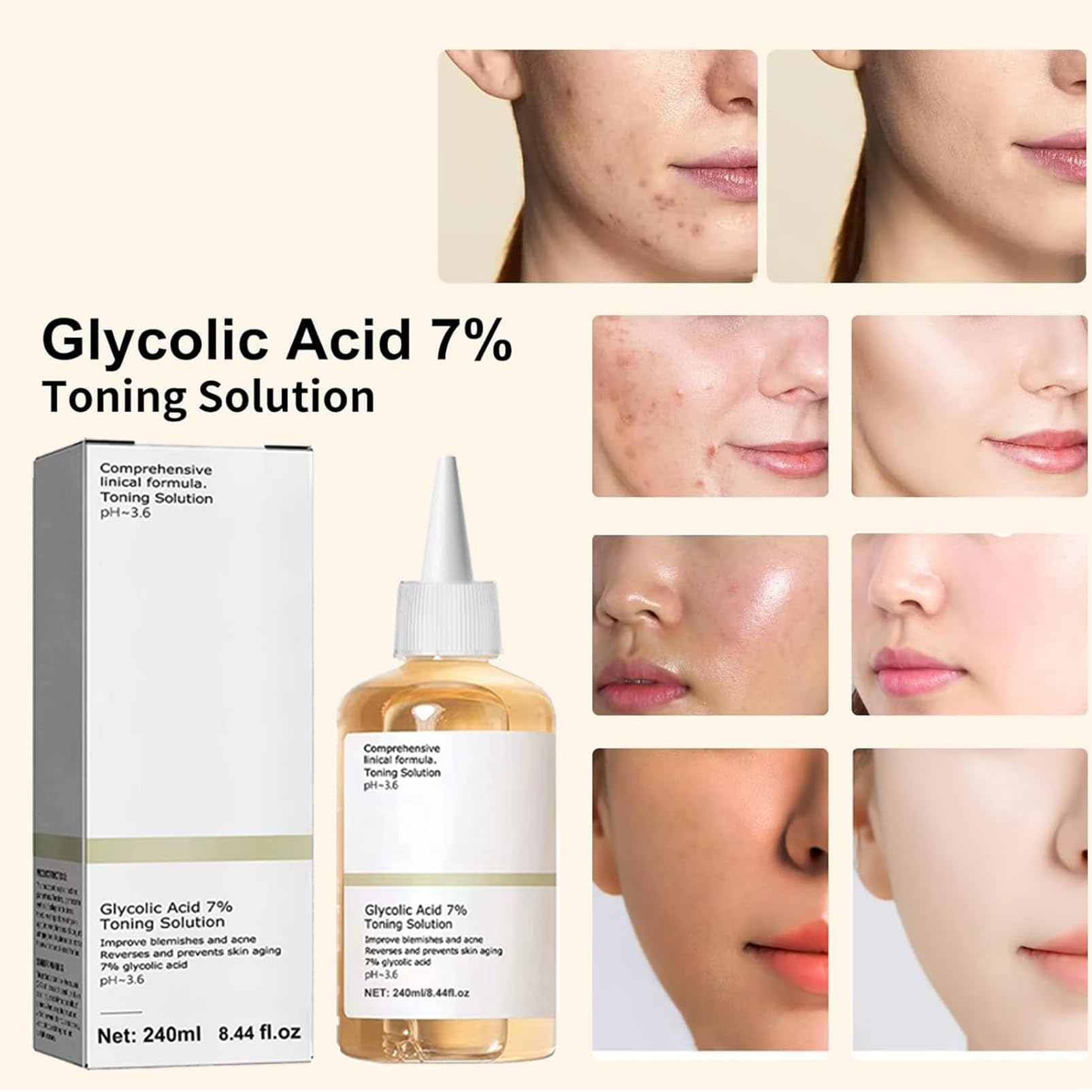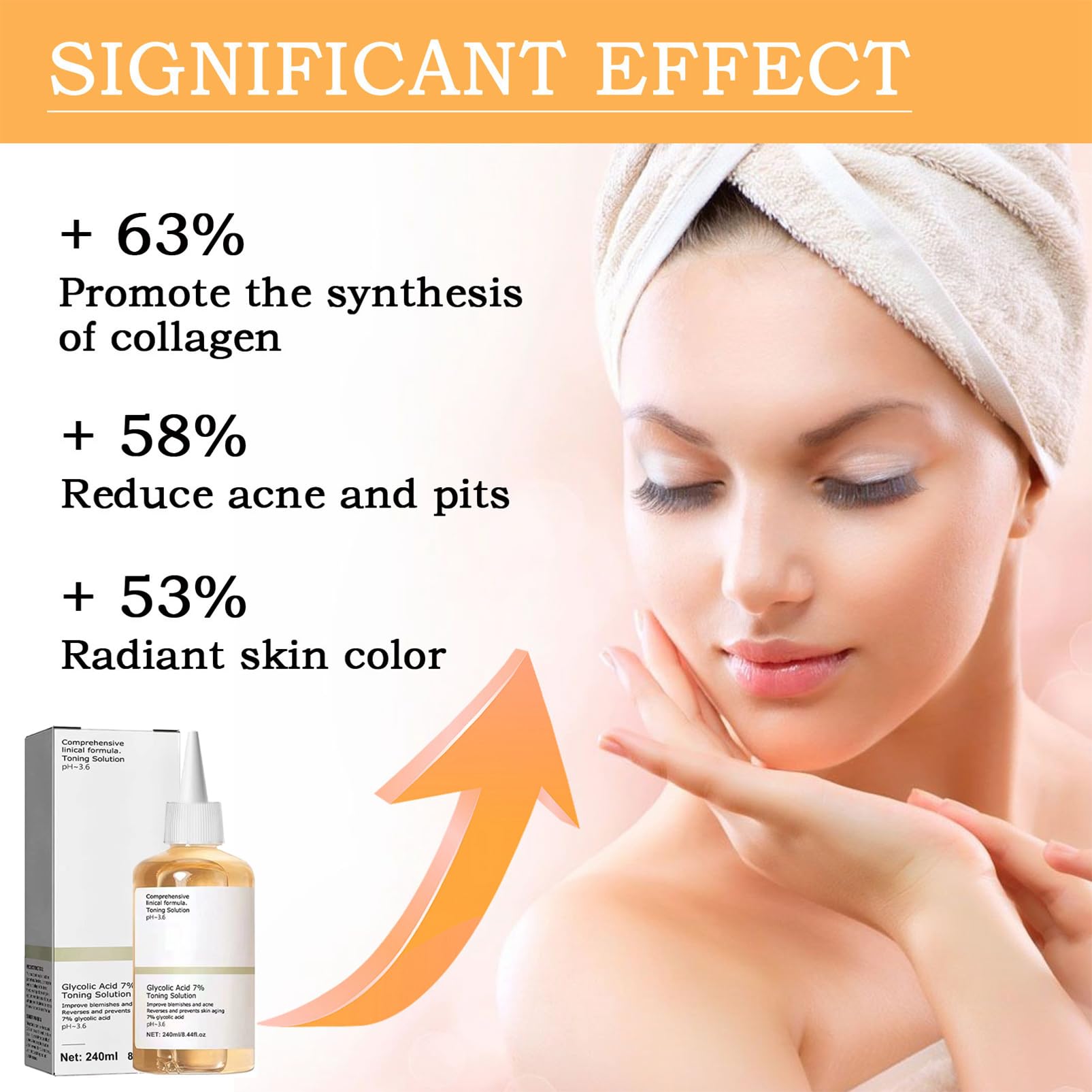Glycolic Acid 7% Toning Solution, Hydrating Toner for Face,Glycolic Acid Skin Toner Smoothing Face Toner Facial Exfoliation for Blemishes and Acne Facial Moisturizer-Repair Damage Skin (240ml)