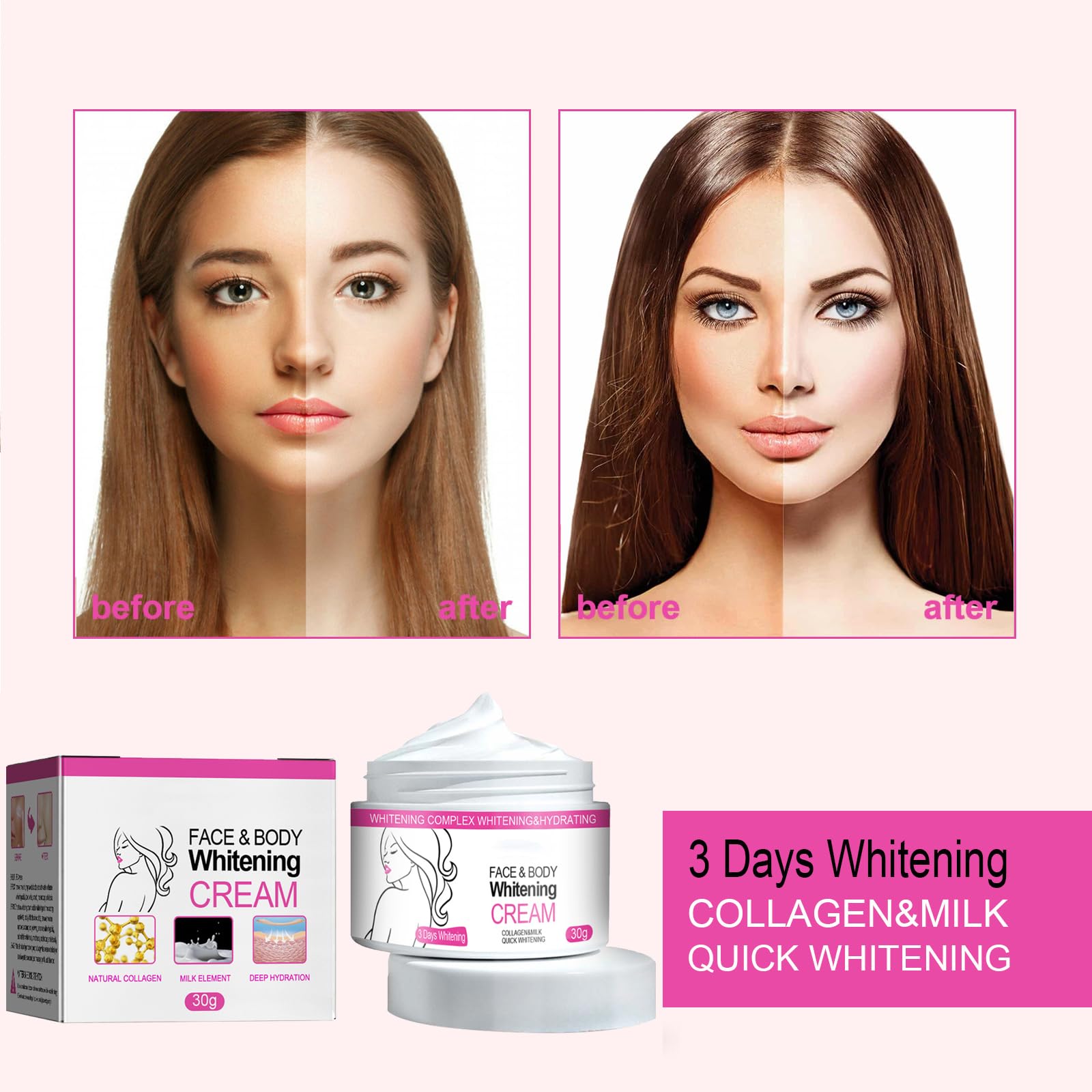 - Mild & Non-irritating:We use a gentle formula. This whitening moisturizing cream does not irritate the skin and is especially gentle on the most sensitive skin and body areas.