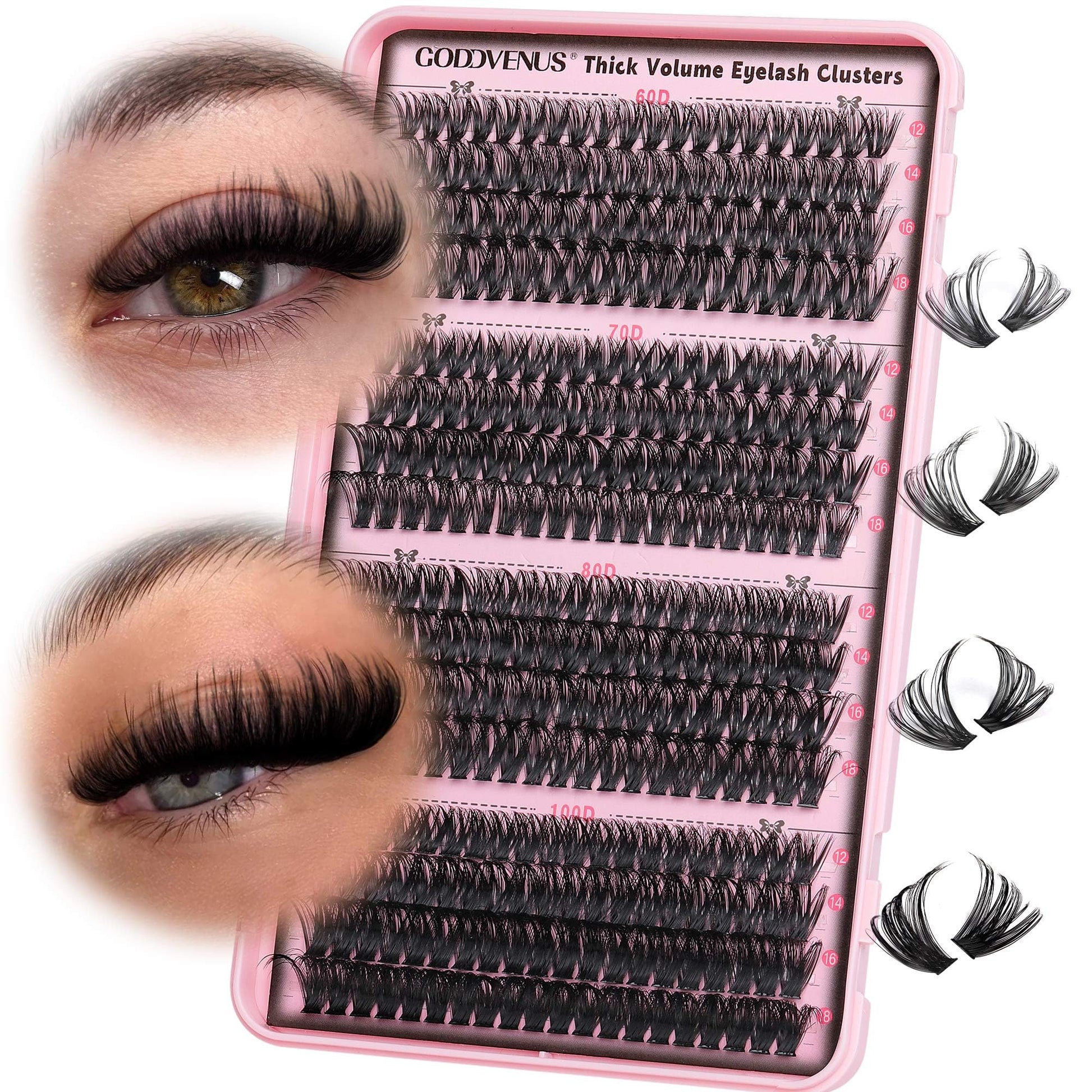 Goddvenus Fluffy Individual Eyelashes 60+70+80+100D Clusters Lashes 320Pcs Lash Clusters DIY Lashes Individual Cluster Russian D Curl Eyelash Clusters 12-18mm Mix Individual Lashes