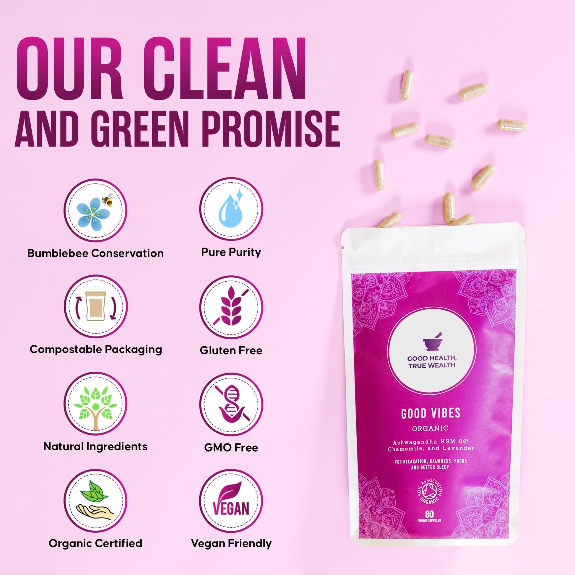Good Health, True Wealth Organic Ashwagandha KSM 66 with Lavender and Chamomile - 90 Vegan Capsules - for Relaxation, Calmness, and Sleep Support