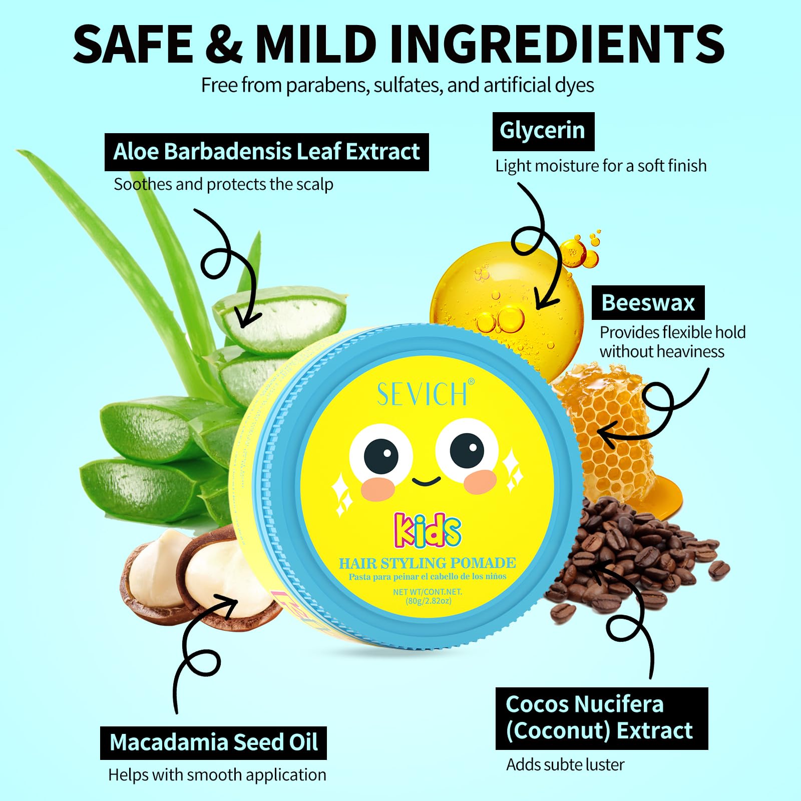 - EFFECT: Our Kids' Hair Styling Pomade helps kids to create various fun and cute hairstyles, adding a touch of charm and playfulness to their looks. Perfect for taming unruly strands and sparking their creativity.