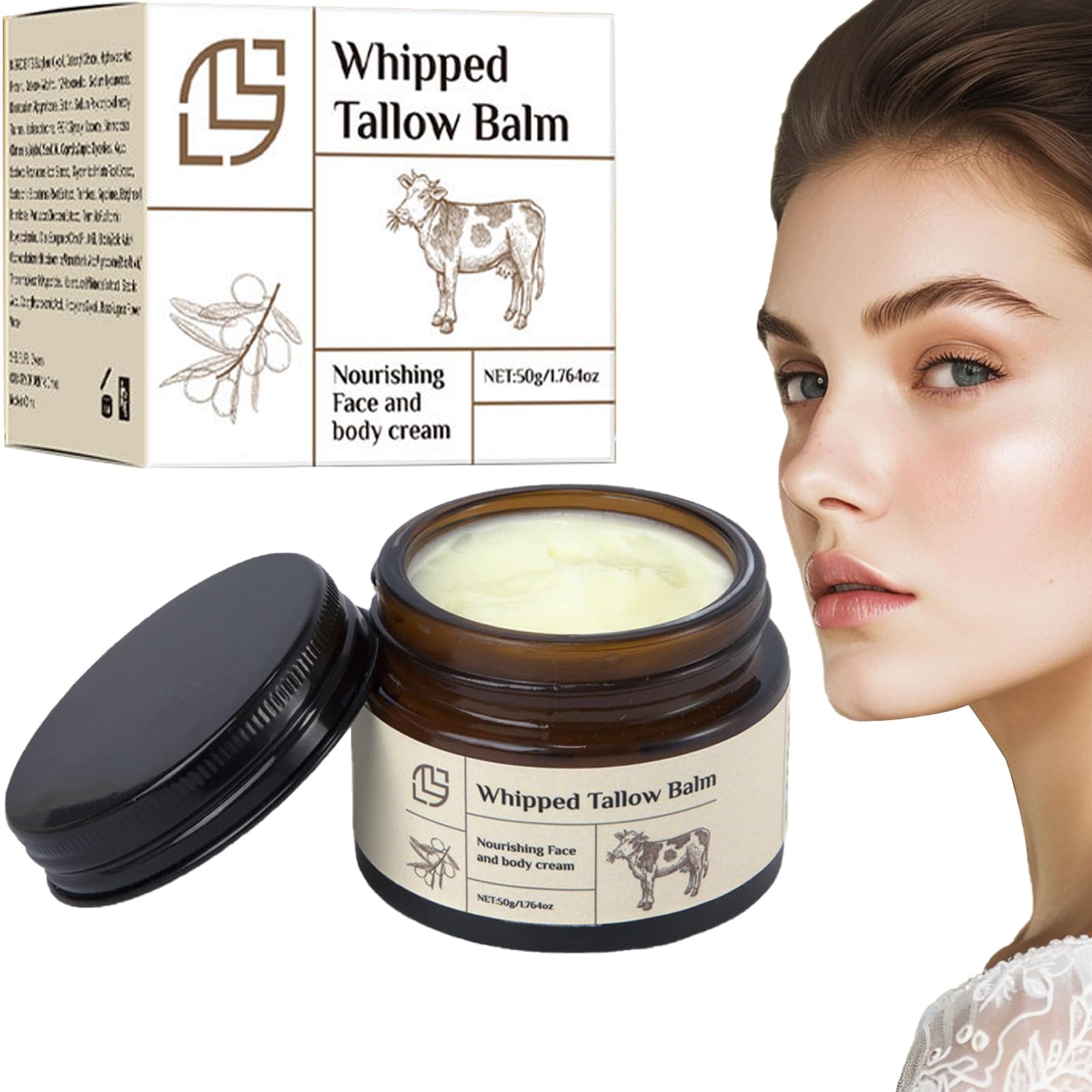 Grass-Fed Tallow Balm - Nourishing Face and Body Cream for Dry Skin, with Beef Tallow for Deep Moisturization and Skincare