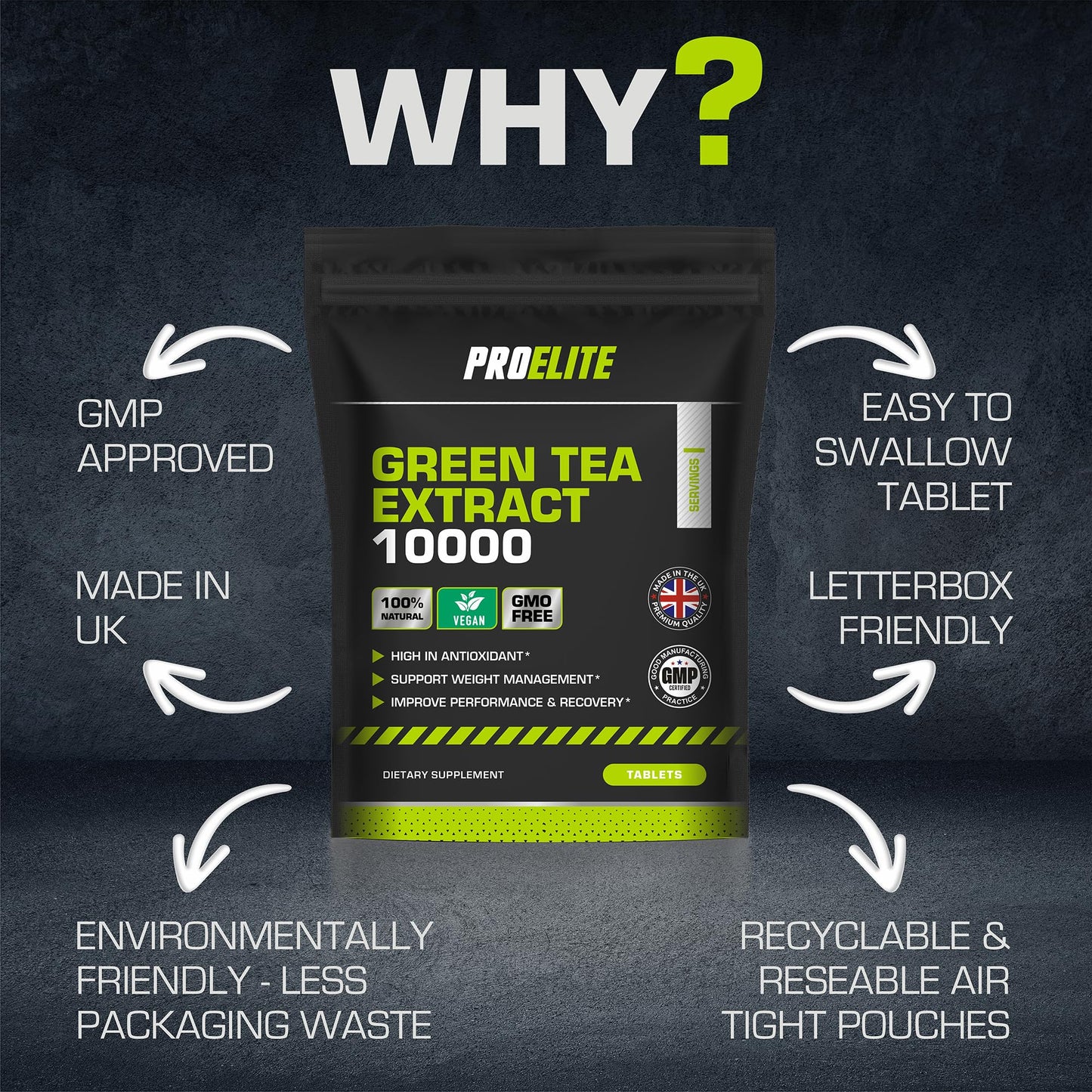 Green Tea Extract 10,000mg of Antioxidant 180 Tablet | 95% Polyphenols (297mg per Tablet) | (6 Months Supply) | Resealable and Recyclable Pouch | Vegan & Vegetarian | by PROELITE