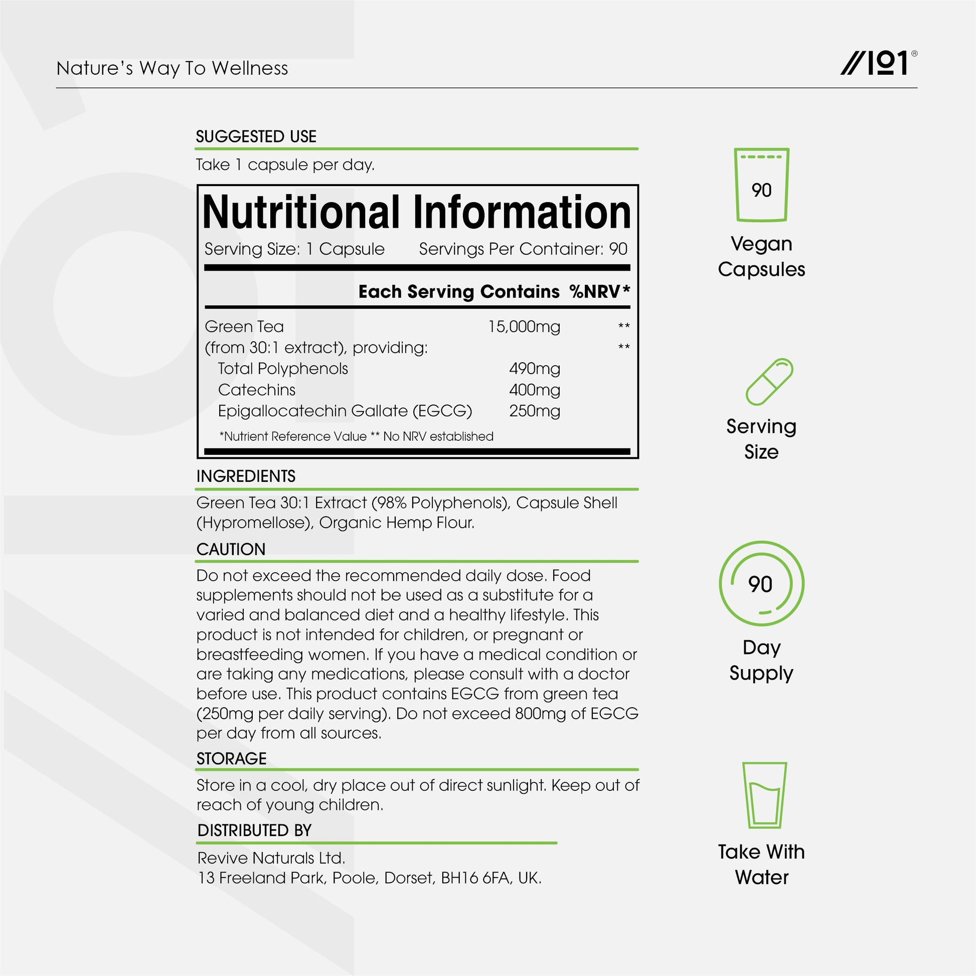 Green Tea Extract 15,000mg - High Strength 95% Polyphenols (490mg per Capsule) - 90 Vegan Capsules (3 Months Supply) - Resealable and Recyclable Pouch - by Alpha01