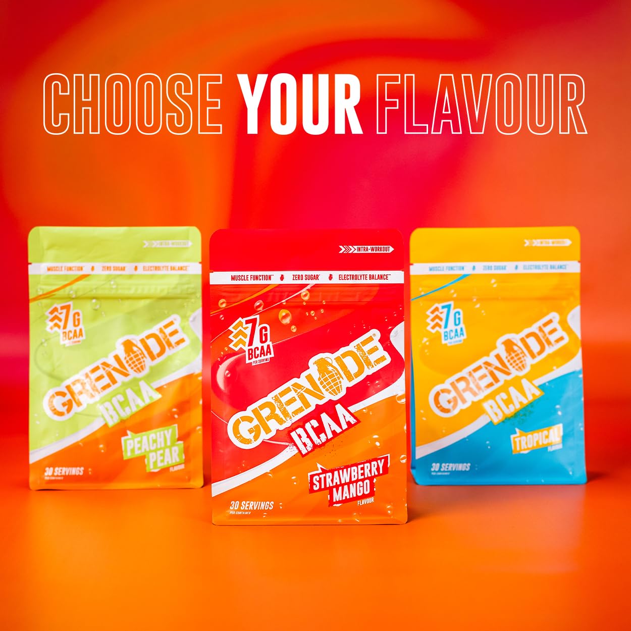 Grenade BCAA Intra Workout Powder, Zero Sugar plus Muscle Function & Electrolyte Balance Support (30 Servings) - Strawberry Mango, 390 g (Pack of 1)