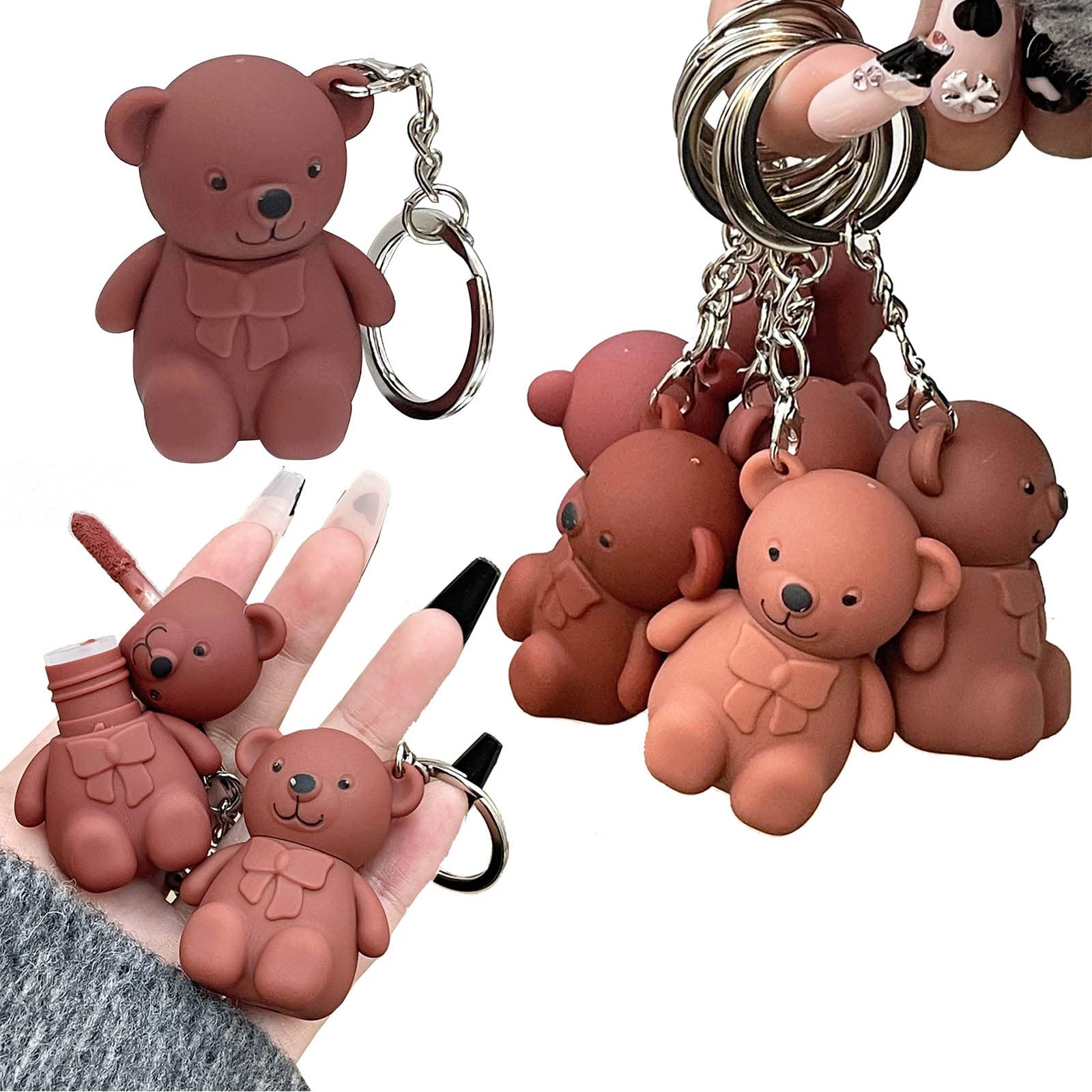 Grospe 2 in 1 Keychain Bear Lipsticks Velvet Matte Lipstick Long Lasting Waterproof Lip Gloss Cute 2 in 1 Key Chain Bear Lipstick Lip Mud Nice Gift for Girls Women - C(6 colors)