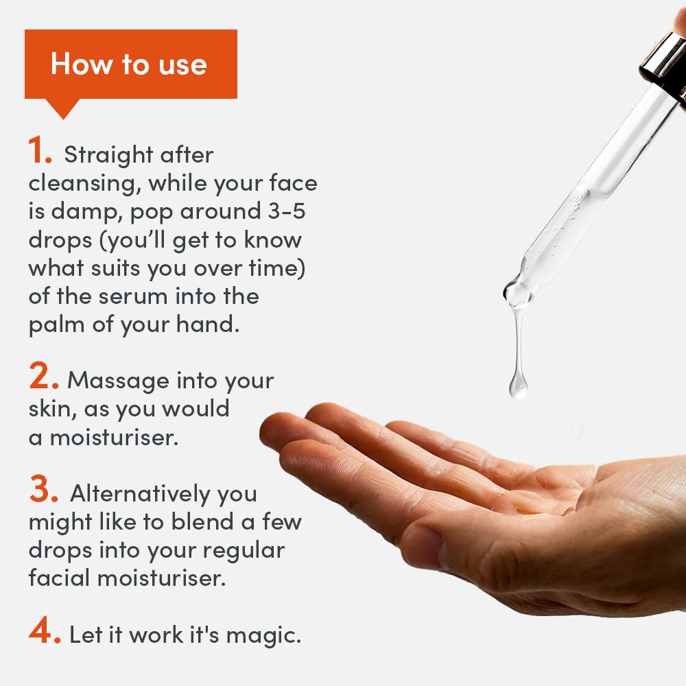 "Ready to turn your skincare routine into a radiant ritual? Meet your new obsession — our vitamin C kakadu plum facial serum, a citrus-powered glow-up in a bottle. Designed in the UK and powered by nature’s most potent superfruit, this vitamin c serum is your shortcut to brighter, firmer, and healthier-looking skin. Whether you're fighting early signs of aging or just craving that lit-from-within radiance, this is the vitamin c serum for face your glow goals have been waiting for. At the heart of this formula is kakadu plum, the world’s richest natural source of vitamin C — 100x more than oranges. This hero fruit brightens dull skin, smooths tone, and reduces the appearance of fine lines by boosting collagen. Paired with niacinamide (vitamin B3), this anti wrinkle serum tightens pores and strengthens your skin’s barrier, leaving it calm, clear, and visibly refreshed. We’ve added raspberry extract to help protect against UVB-related damage, while sweet orange and apricot deliver antioxidant hydration that leaves skin soft, toned, and glowing. This ultra-lightweight vit c serum face absorbs fast with no sticky residue, making it the perfect face serum for layering under makeup or wearing bare-faced with confidence. With a fresh citrus scent and smooth, non-greasy finish, our vitamin c face serum transforms daily skincare into a self-care ritual. It’s alcohol-free, phthalate-free, vegan, cruelty-free, and planet friendly. Gentle enough for all skin types — even as a face serum for men — and powerful enough to impress the toughest beauty critics. Packed in a sleek 30ml amber glass bottle, this serum face essential looks as good as it performs. Whether you're gifting it or keeping it for yourself, you’re getting premium quality that competes with the most luxe anti aging serum for women — minus the hefty price tag. Ready to glow? Let’s go."More Info