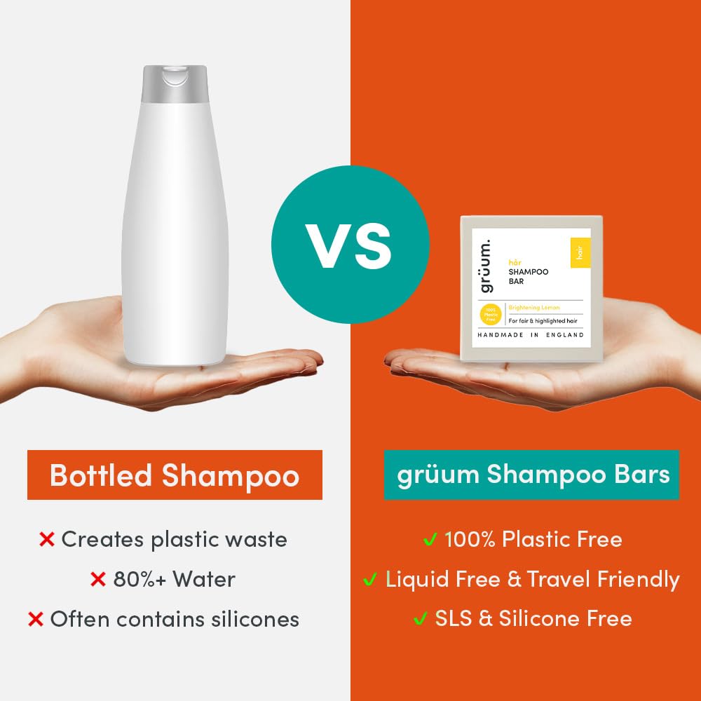grüum Twin Pack Brightening Shampoo Bar 50g - Solid Shampoo Bars for Hair Up to 60 Washes - Plastic Free Vegan Bar for Men & Women - Paraben Free Rich Lathering Bars for Colour Treated Hairs