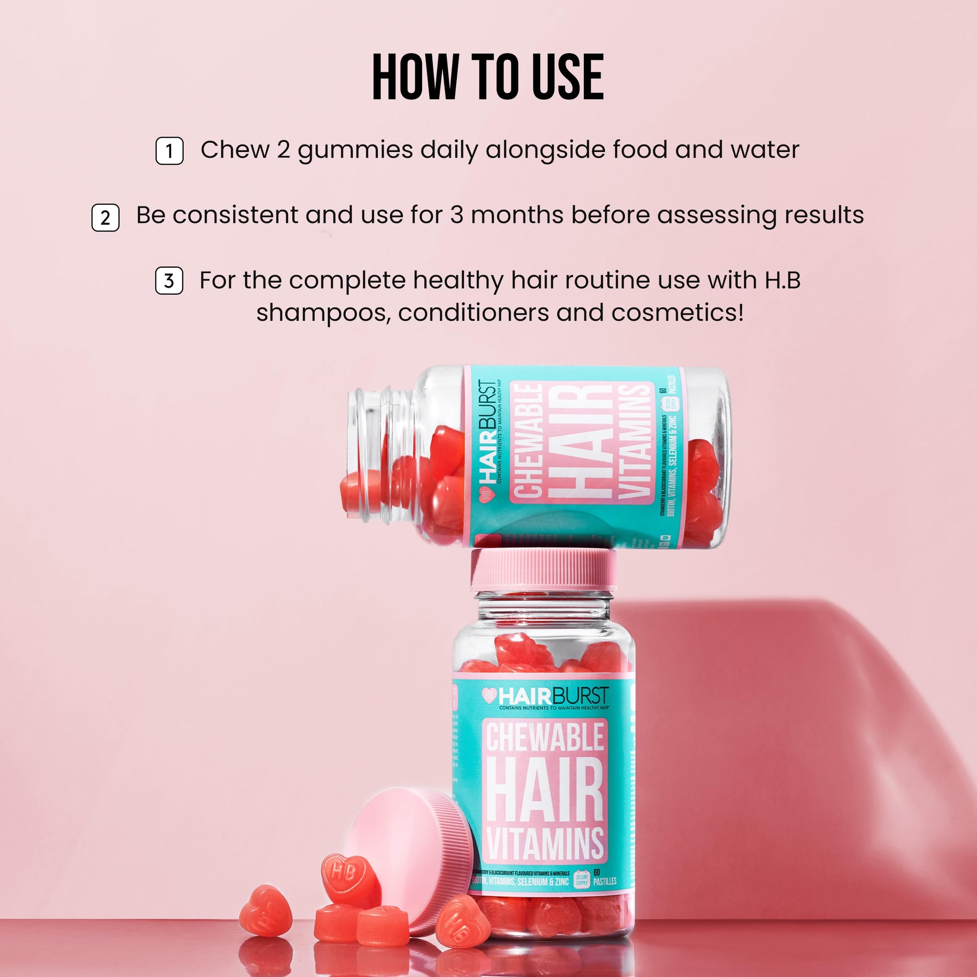 - Biotin Gummies: Feed your hair biotin, zinc and selenium to maintain a healthy, luscious mane! Use in combination with Hairburst’s range of hair products to give hair a serious boost of health.