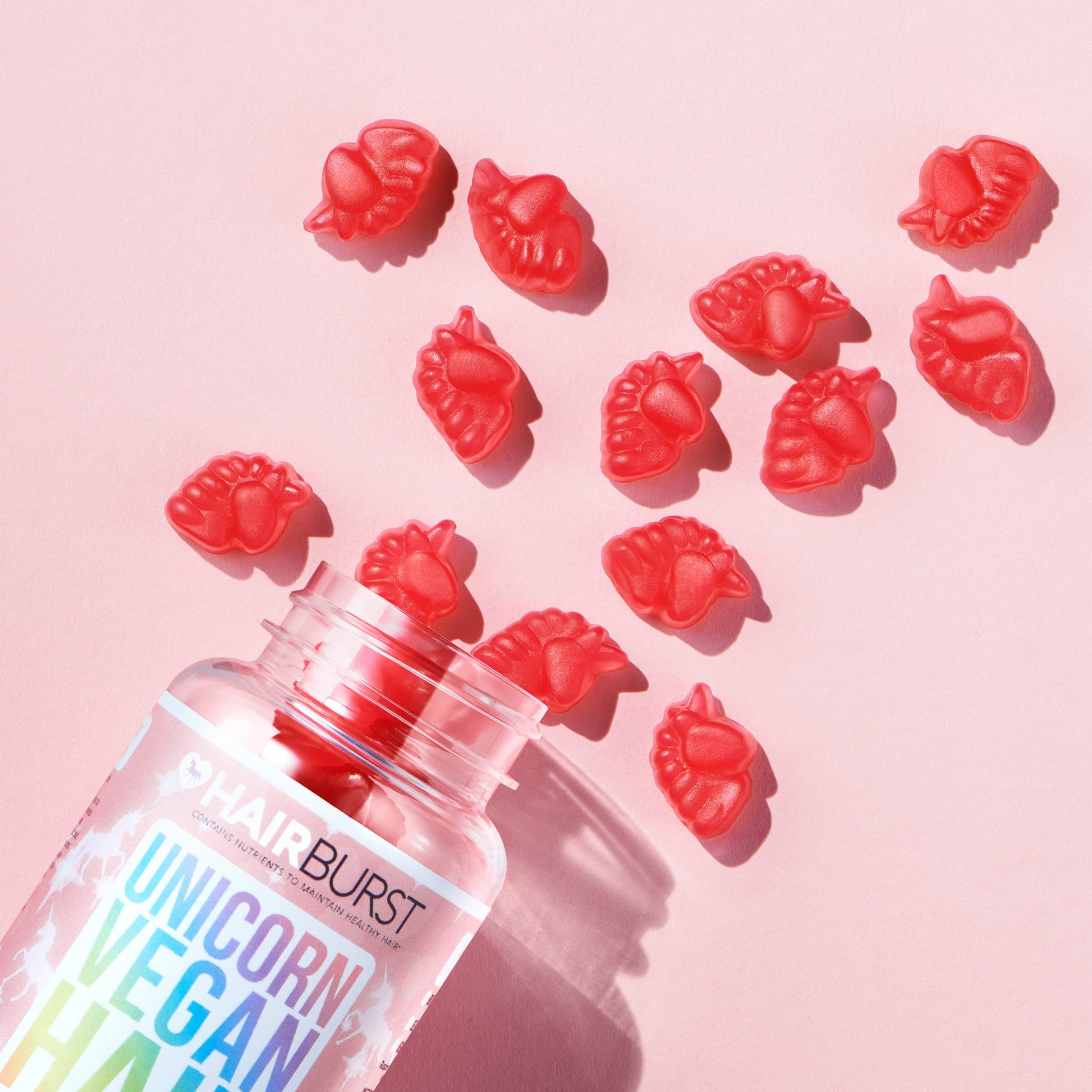 Hairburst Unicorn Vegan Hair Vitamins are the tasty and easy way to ensure you are getting the essential vitamins for healthy hair maintenance. Our new formula has only natural colours and flavourings and contains a higher level of Biotin, and most importantly, it is suitable for vegans. We created this product for people who find it hard to swallow tablets but still want longer, stronger, healthier looking hair.