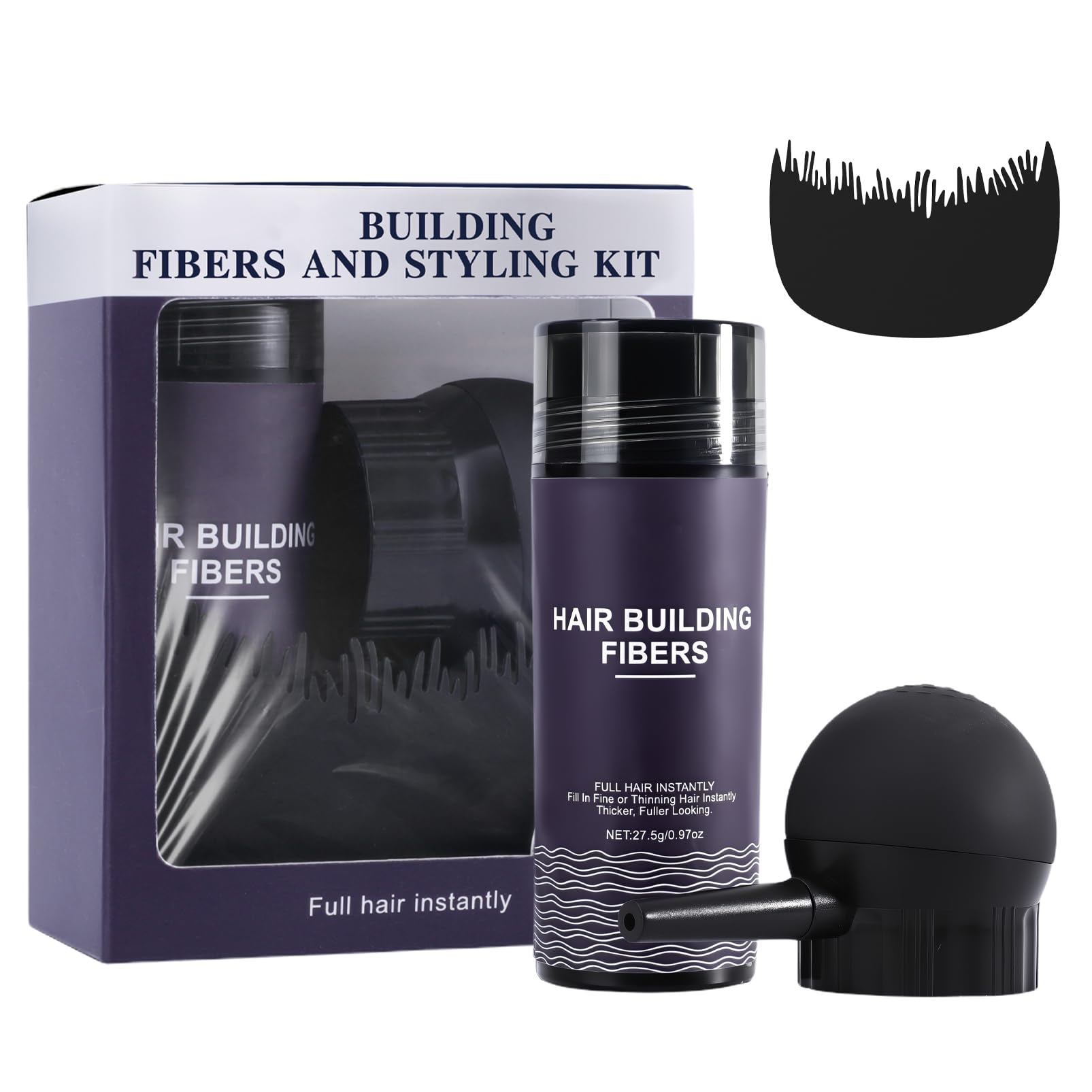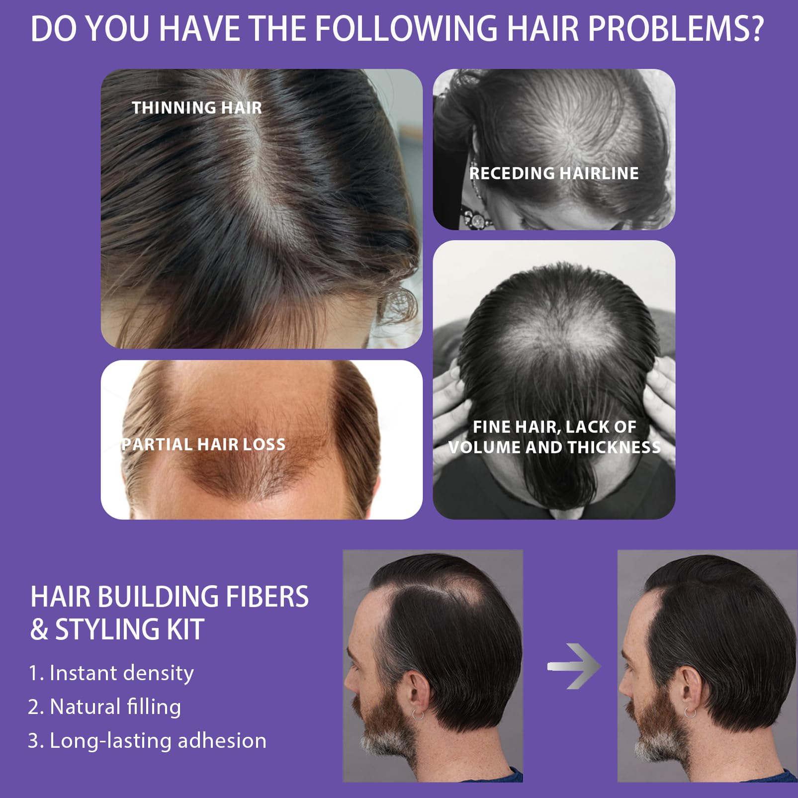 Hair Fibres for Thinning Hair, Nature Keratin Hair Fibers Instantly Full Hair,3-in-1 Hair & Beard Styling Set,Black Hair Loss Concealer for Men and Women