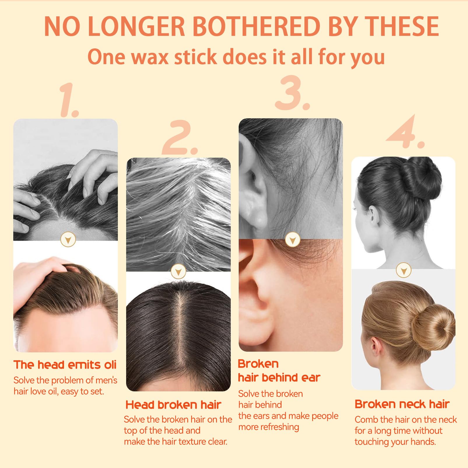 Hair Wax For Kids With Hair Edge Brush,Edge Control Anti-Frizz Non-greasy Hair Pomade Stick for Fly Away and Edge Frizz Hair,Easy to Use, Compact and Portable