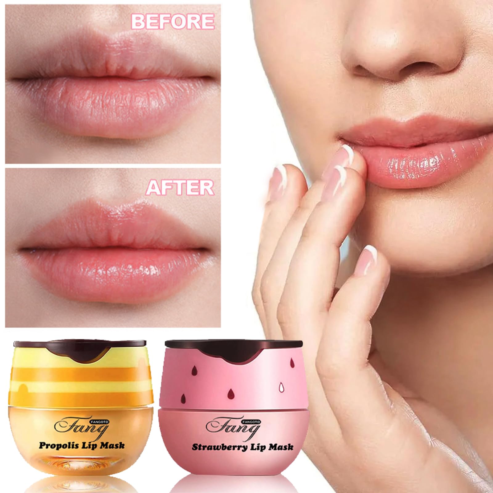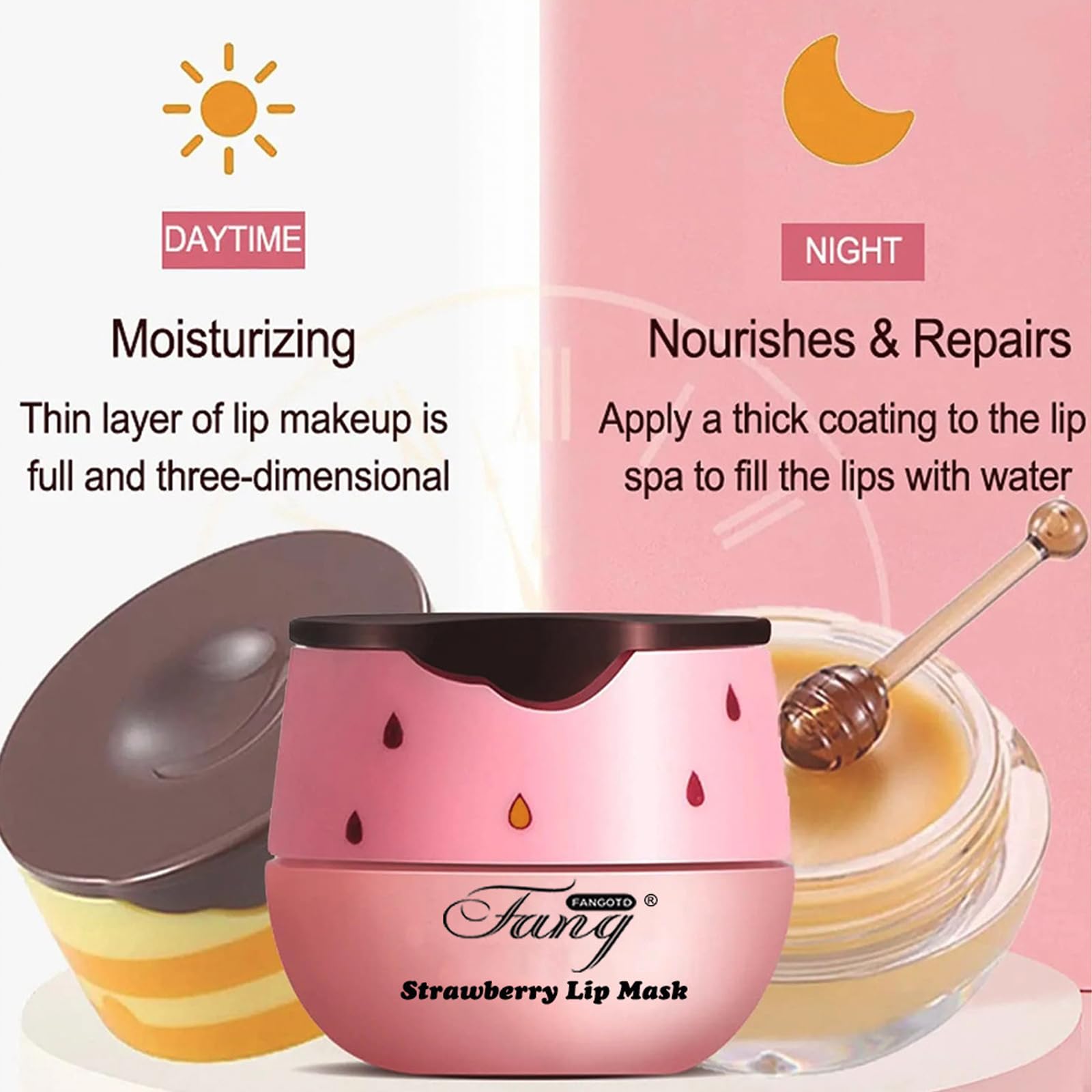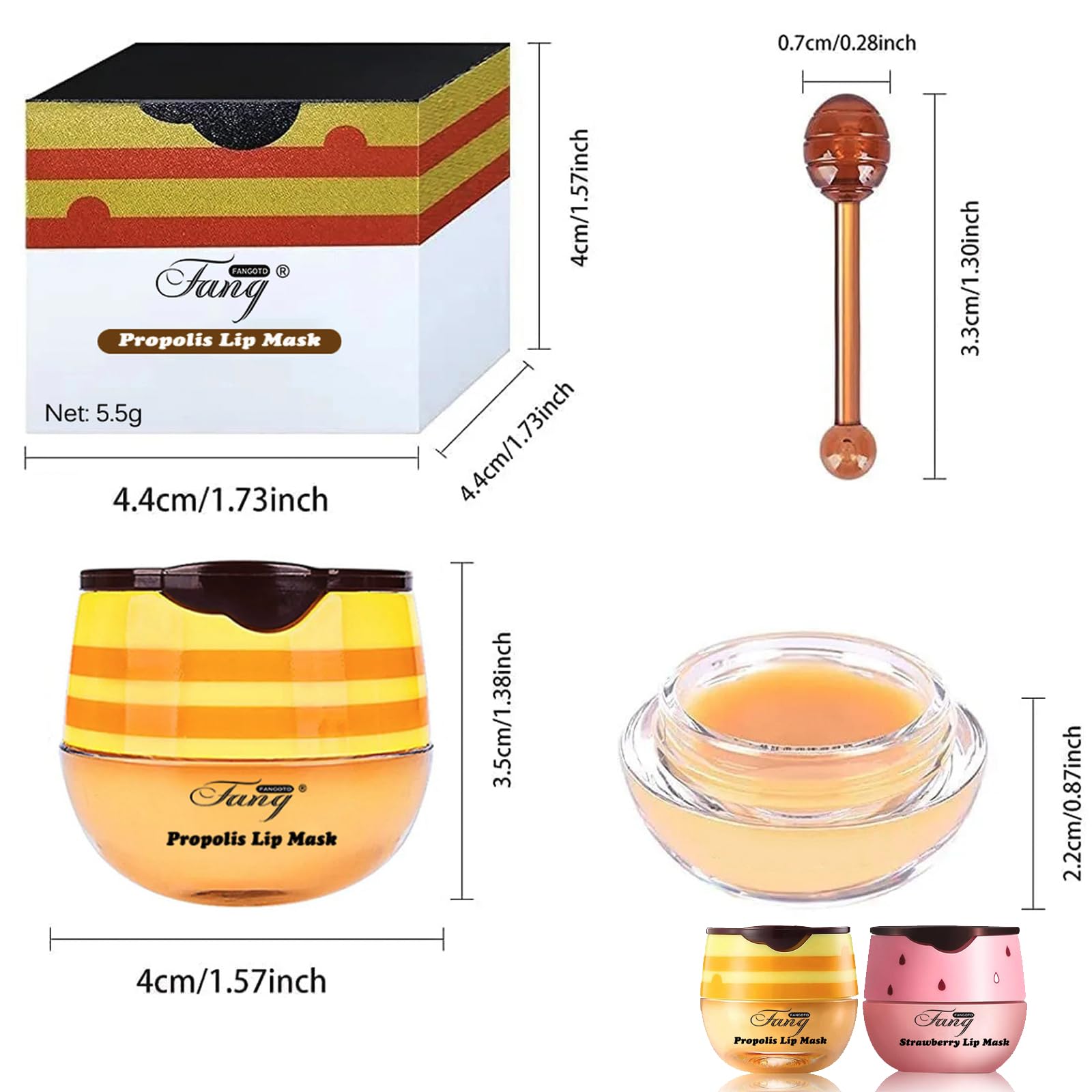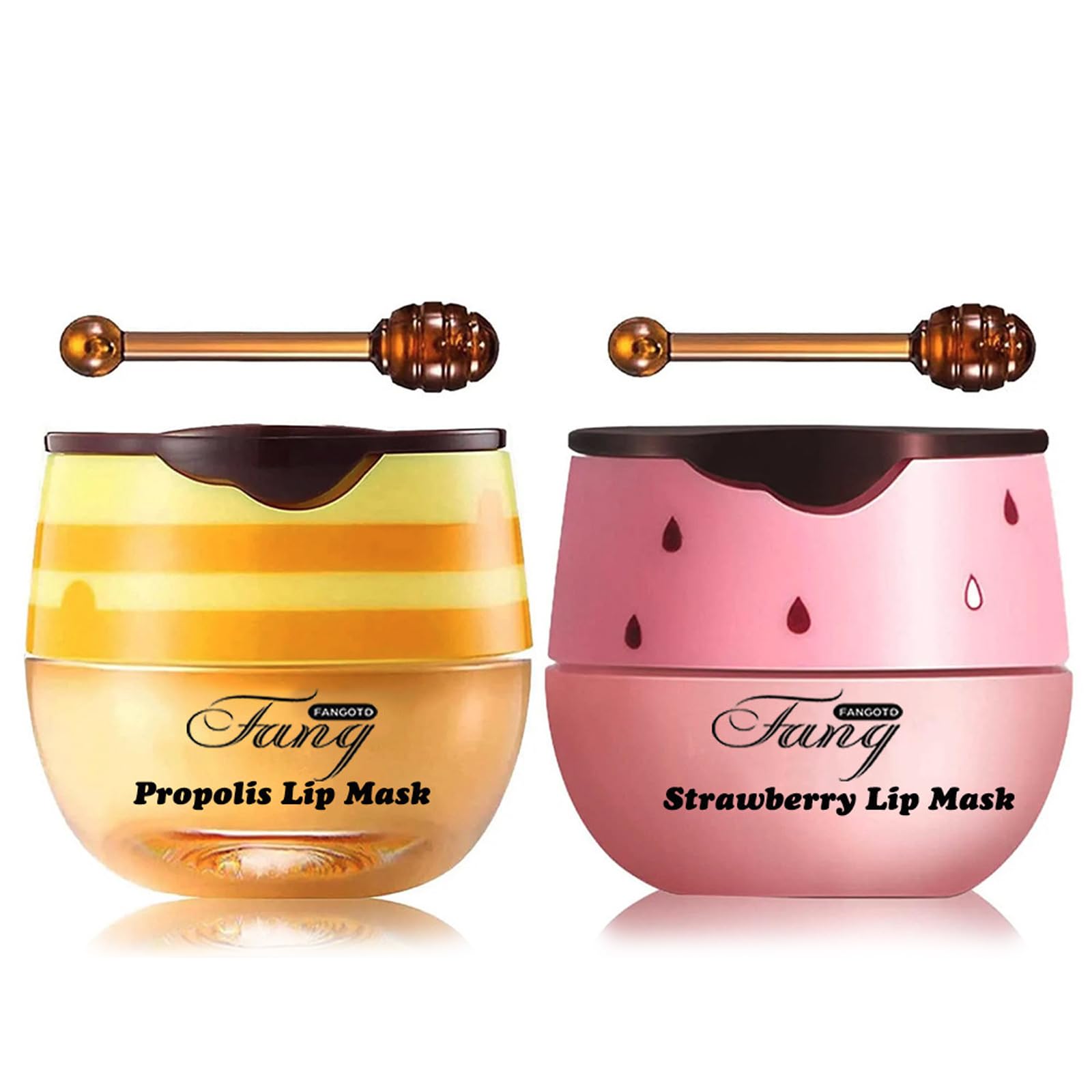HAORQEE 2PCS Honeybalm Lip Mask Lip Balm Set, Honey Strawberry Lip Sleeping Mask Lip Care Set Lip Repair Lipbalm Lip Balms Lip Plumper, Reduce Lip Lines Moisturiser Nourishing for Dry Peeling Cracked Lips