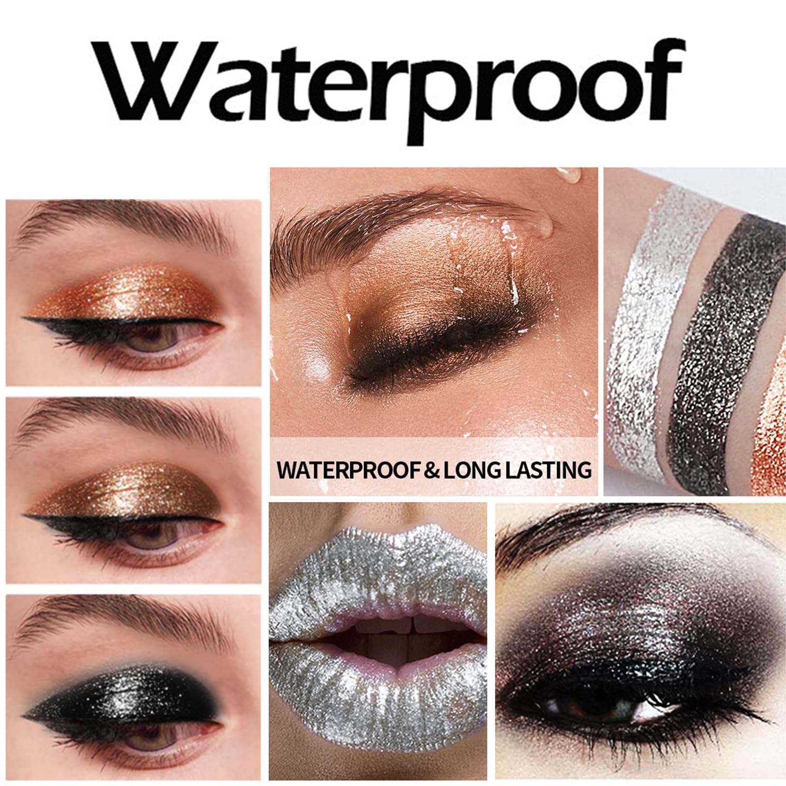HAORQEE Glitter Eyeshadow, Brown Black Gold Shimmer Liquid Eye Shadow, Metallic Sparkly Shiny Pearlescent Long Lasting Eye Shadows Eyeliner Eye Makeup for Women Girls Gifts