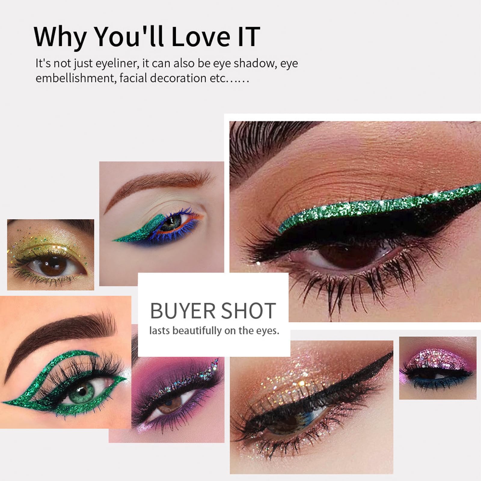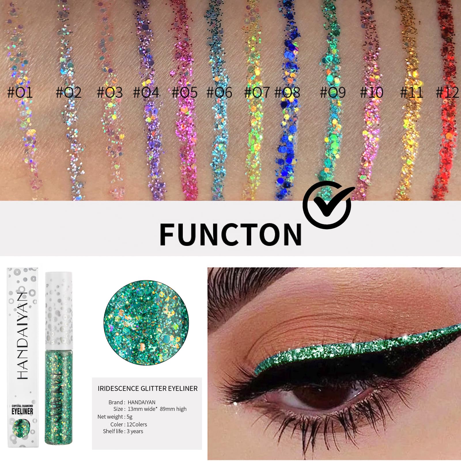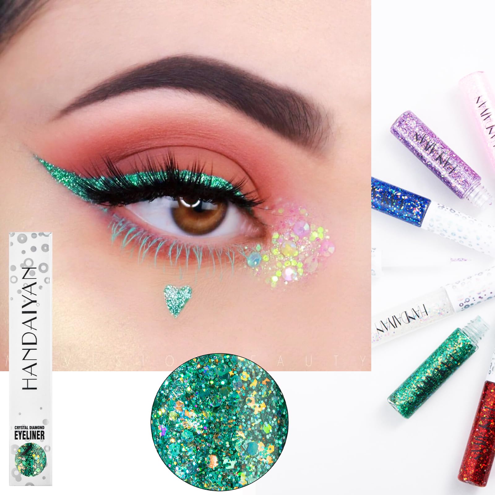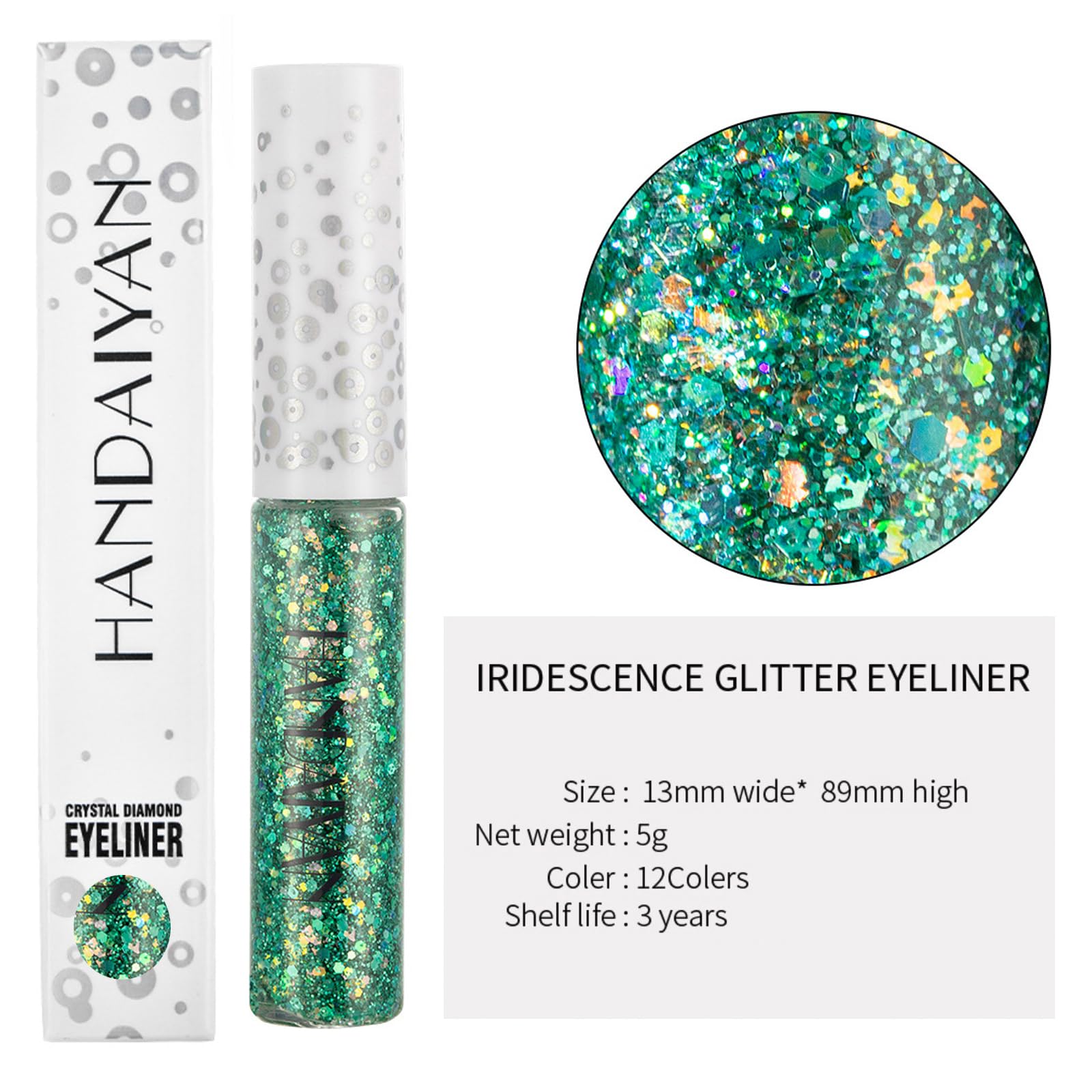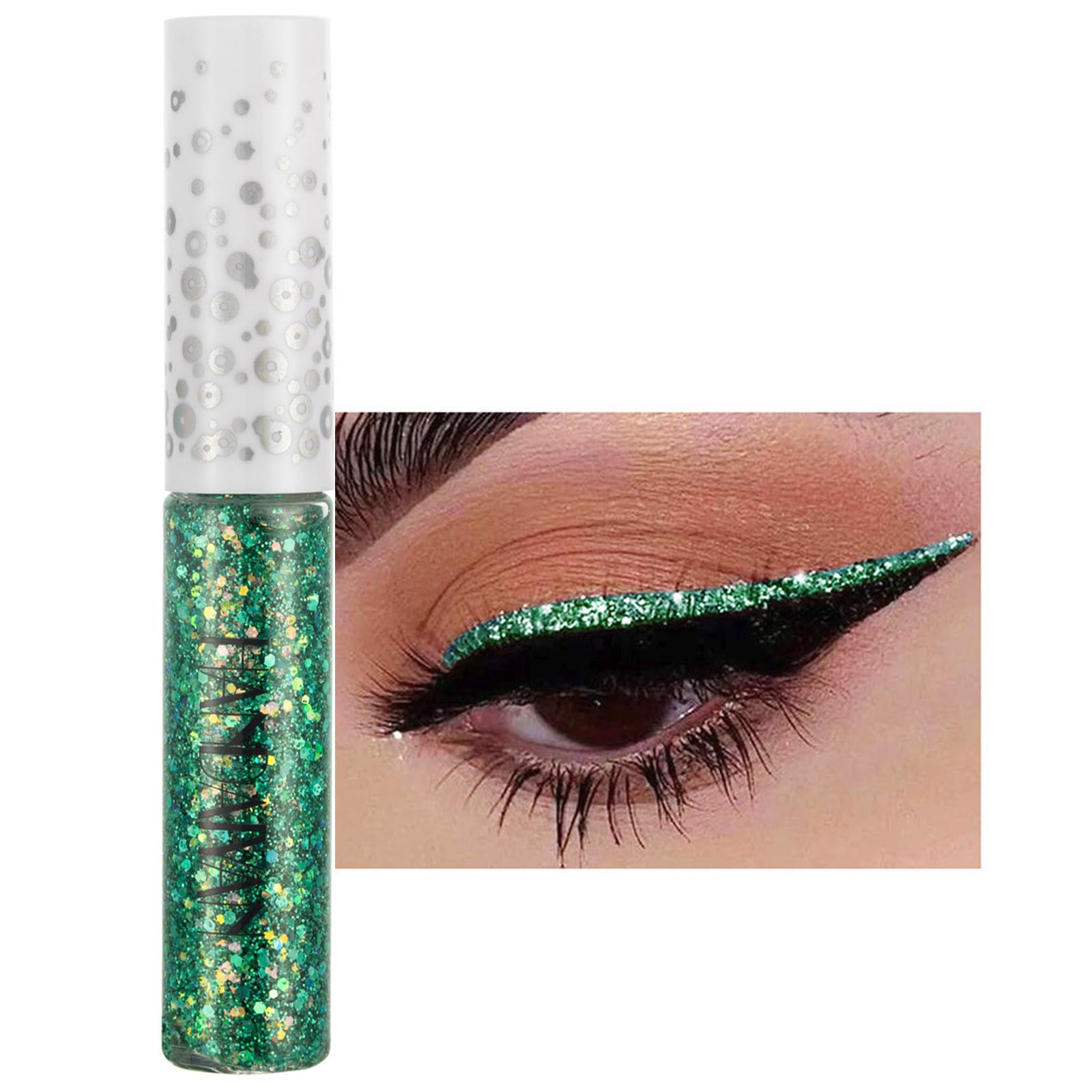 HAORQEE Green Eyeliner, Coloured Glitter Liquid Eye Liner Pencil Waterproof Long-Lasting Metallic Sparkling Fast Dry Smudge-Proof High Pigmented Christmas Gifts Eye Makeup for Women