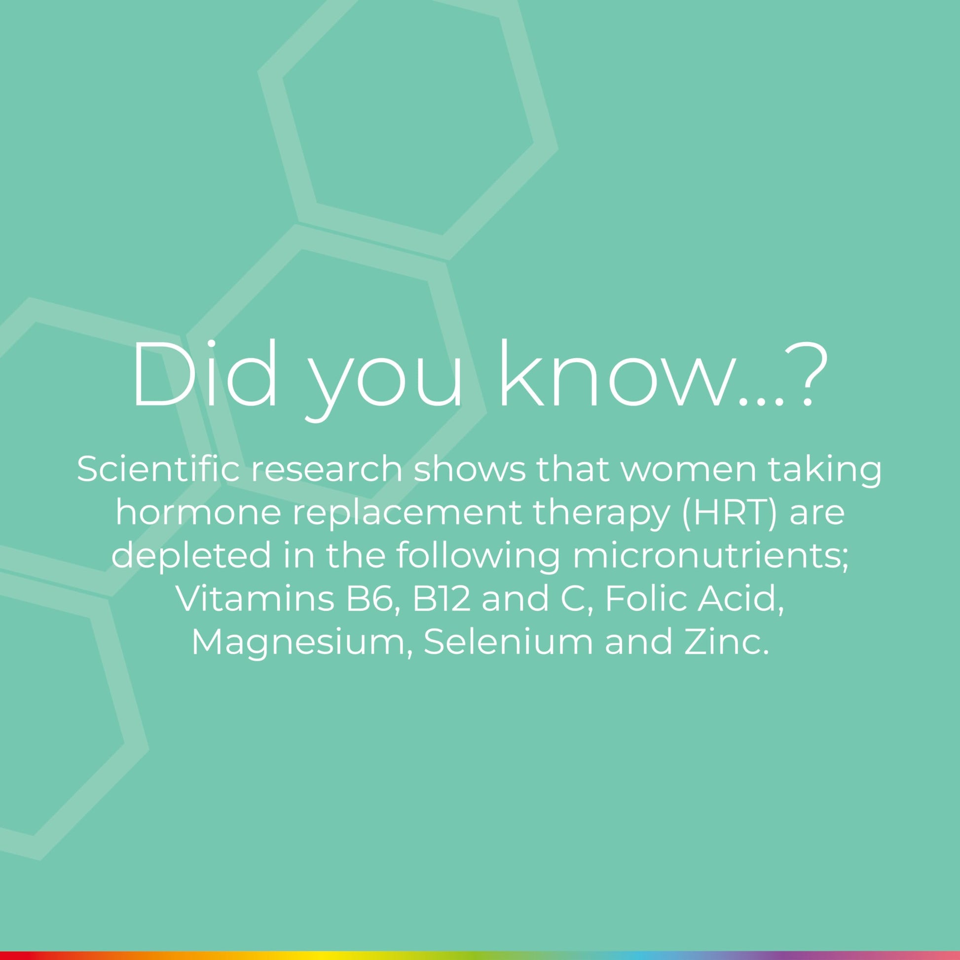 Health & Her is a brand built by women for women. Our science-backed formulations support normal health and wellbeing through the various stages of a woman's life. When it comes to multivitamins for women it's not one-size-fits-all. Every stage of a woman's life brings its own nutritional requirements. With this in mind, this supplement has been formulated to provide a nutritional support to be taken alongside Hormone Replacement Therapy (HRT) and includes a full spectrum of vitamins & minerals to support normal everyday health and wellbeing. DESIGNED TO BE USED ALONGSIDE HORMONE REPLACEMENT THERAPY (HRT) Provides Vitamins B6, B12 and C, Folic Acid, Magnesium, Selenium and Zinc – specially designed for women taking hormone replacement therapy (HRT). PLUS a full spectrum of vitamins and minerals carefully blended to support daily wellbeing. 1. BRAIN & MENTAL WELLBEING BRAIN HEALTH - Pantothenic acid contributes to normal mental performance. Iron and Iodine contribute to normal cognitive function PSYCHOLOGICAL FUNCTION - Biotin, Folic Acid, Magnesium and Vitamin B12 contribute to normal psychological function 2. HORMONE HEALTH HORMONE REGULATION - Vitamin B6 contributes to the regulation of hormonal activity. Iodine contributes to the normal production of thyroid hormones T-LEVELS - Zinc contributes to the maintenance of normal t-levels in the blood 3. CIRCULATION SUPPORT BLOOD CLOTTING SUPPORT - Calcium contributes to normal blood clotting FORMATION OF RED BLOOD CELLS - Iron contributes to normal formation of red blood cells and haemoglobin 4. COLLAGEN SUPPORT BONES & JOINTS - Vitamin C contributes to normal collagen formation for the normal function of bones and cartilage, which form part of your joints SKIN, HAIR & NAILS - Vitamin C contributes to normal collagen formation for the normal function of skin. Zinc contributes to the maintenance of normal skin, hair and nailsMore Info