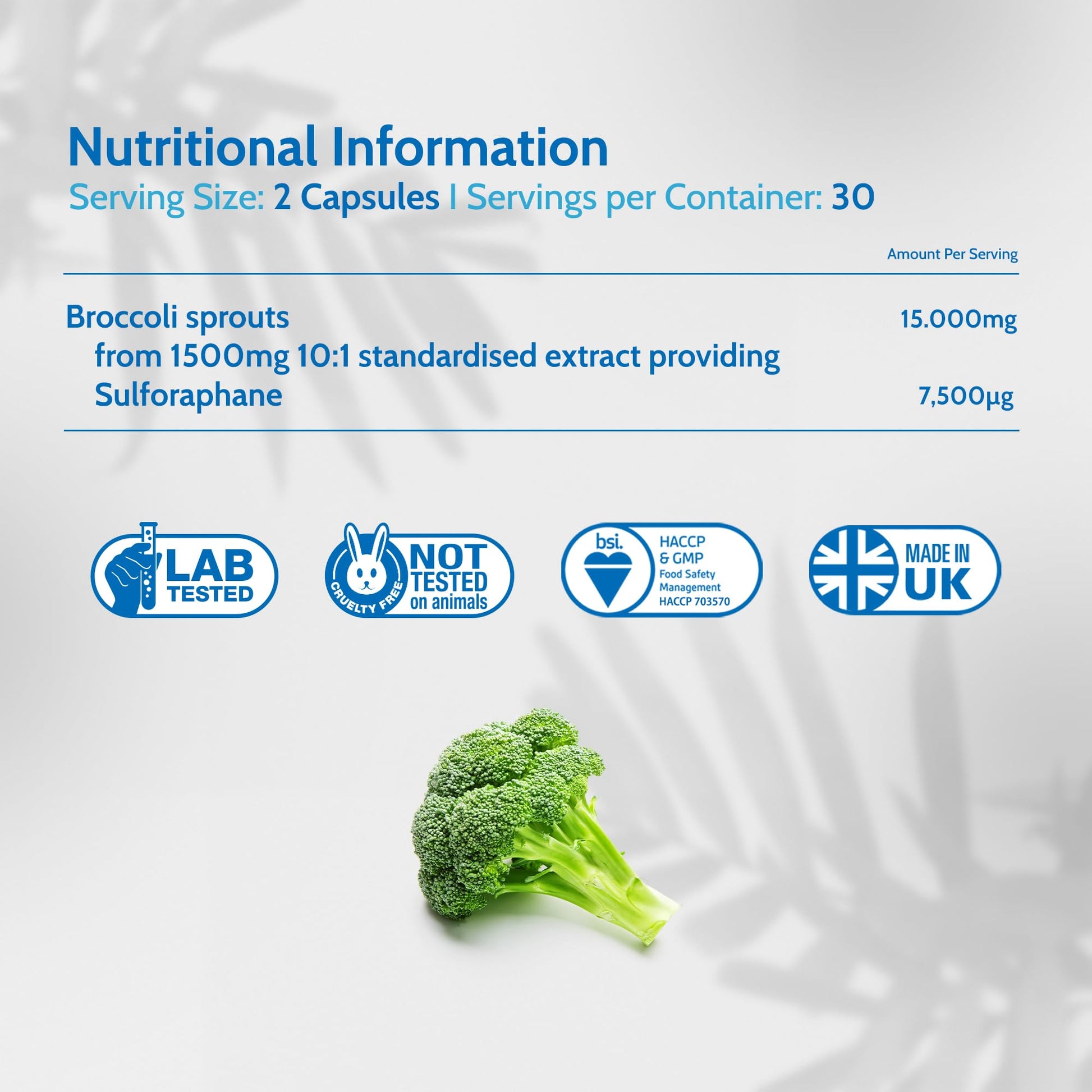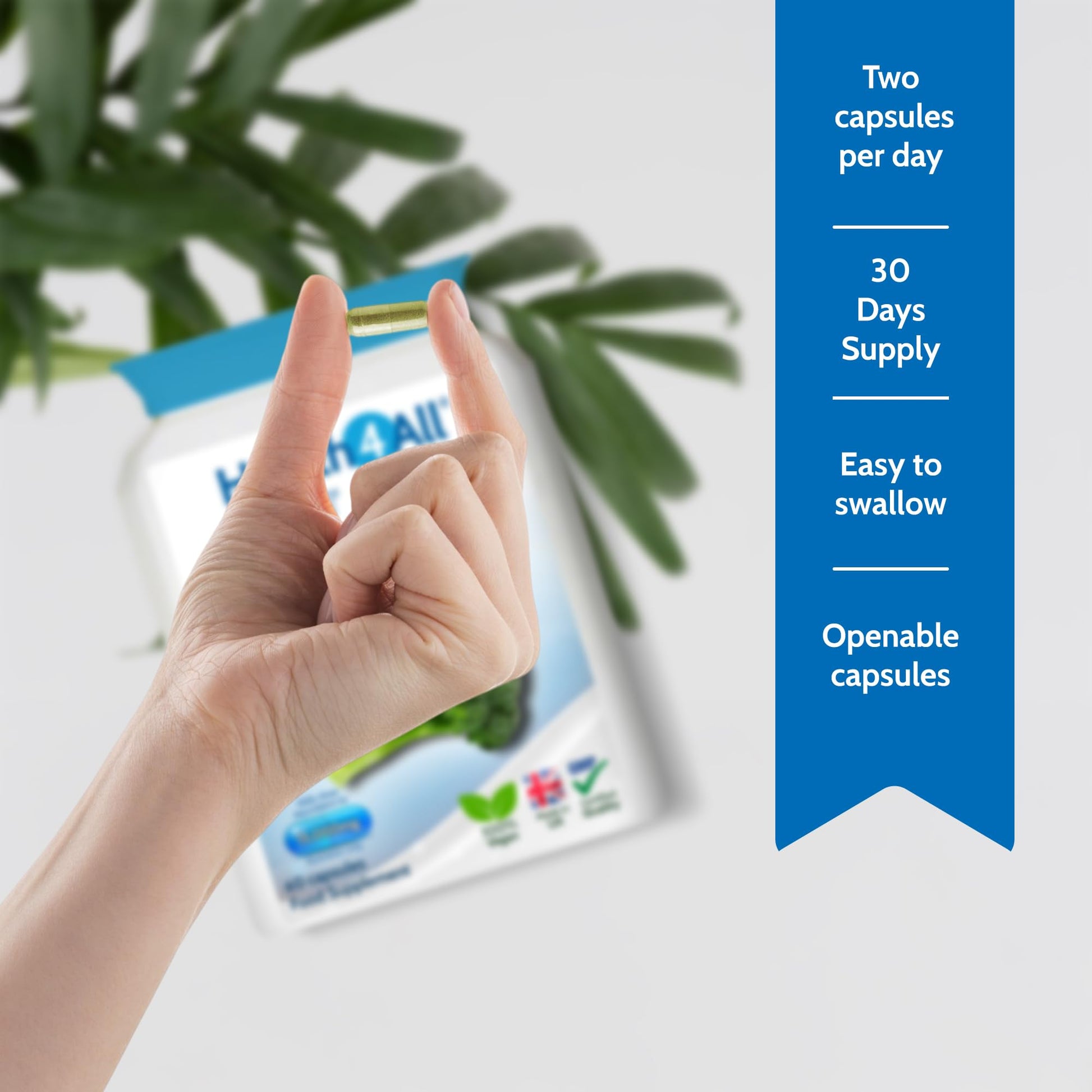 Health4All Broccoli Sprout Extract Capsules deliver a high-strength 15,000mg dose of broccoli sprout equivalent per daily serving, standardised to provide 7,500mcg of activated sulforaphane - a powerful compound known for supporting detox, antioxidant protection, and healthy cell function. This pure, additive-free broccoli supplement is made from 10:1 broccoli sprout extract (Brassica oleracea italica) and comes in easy-to-swallow, 100% vegan capsules. Manufactured in the UK to strict GMP and HACCP standards, the product is conveniently packed in letterbox-friendly packaging. Ideal for those seeking natural support for wellness, these broccoli sprout extract capsules are also a popular choice for people interested in DIM supplements and cruciferous vegetable extracts.More Info
