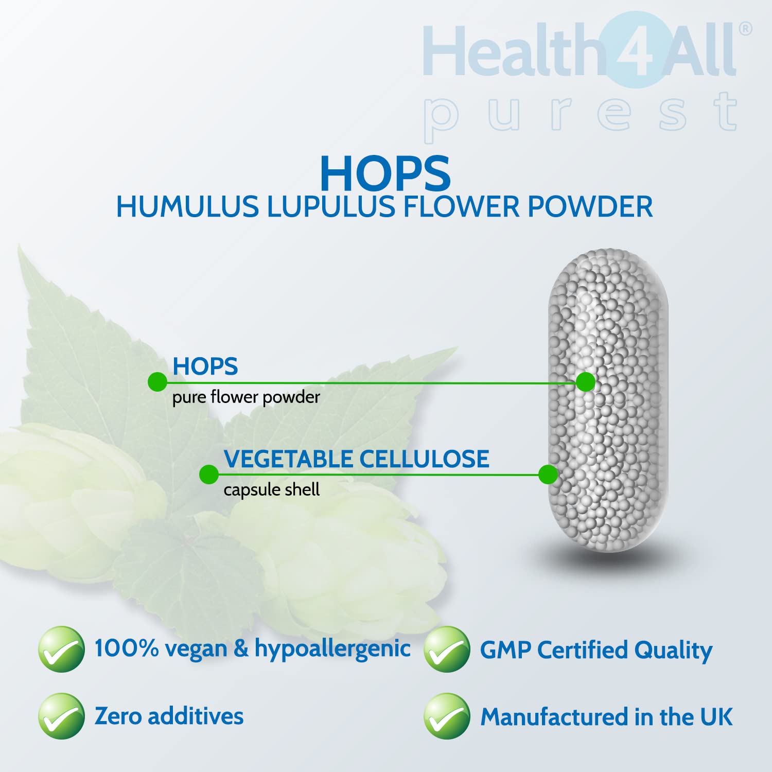 Health4All Hops 400mg 60 Capsules (V) .(not Tablets) Purest: no additives. Vegan Capsules for Anxiety, Stress and Sleep Supplement